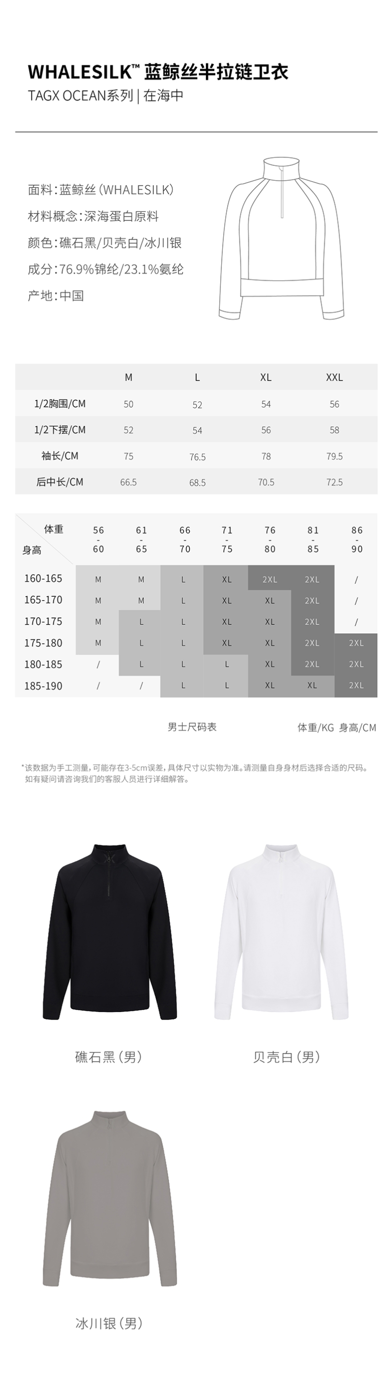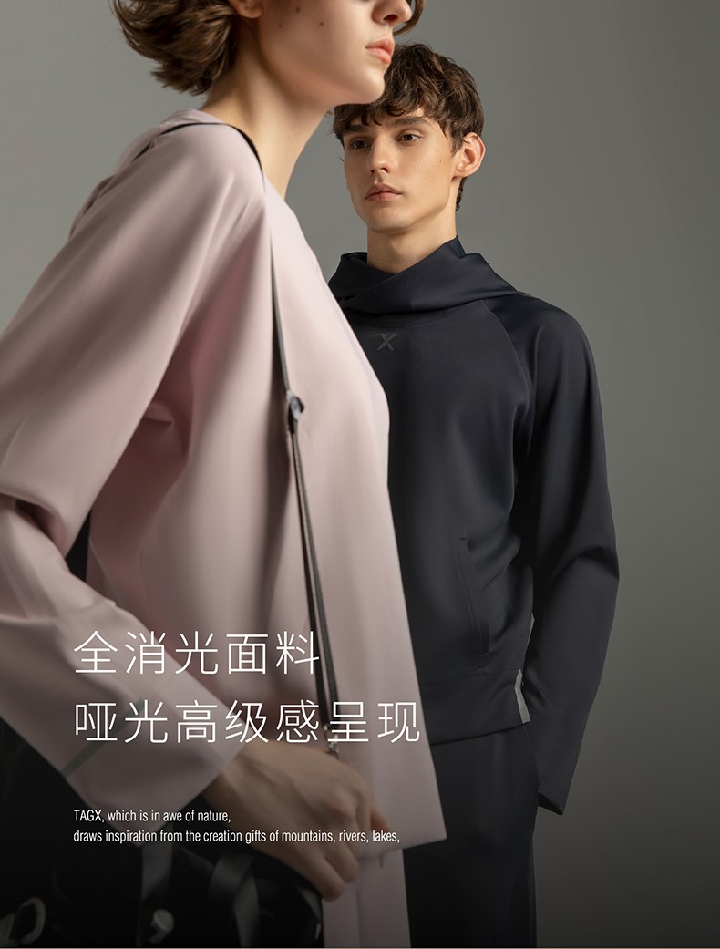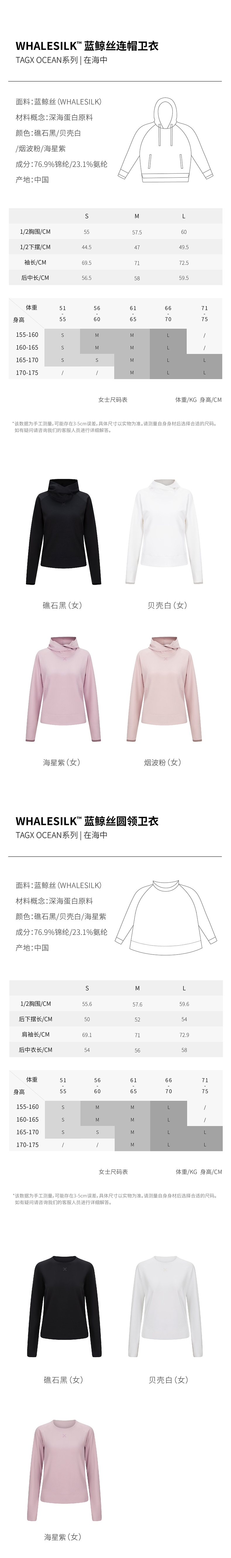 TAGX探观蓝鲸丝连帽卫衣男女圆领高级轻盈运动宽松休闲抑菌春秋纯色