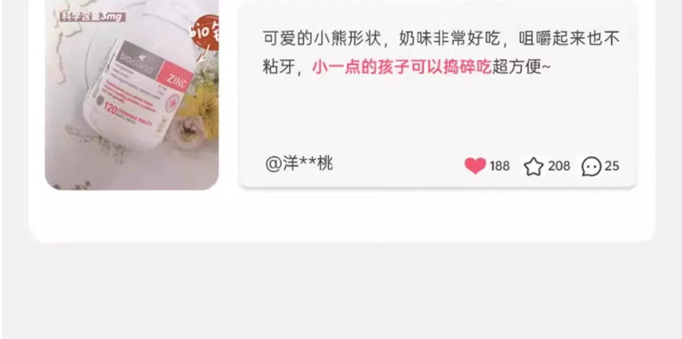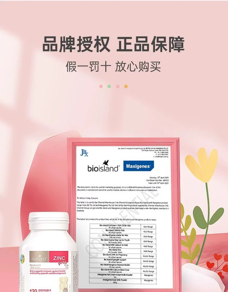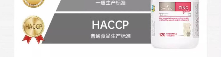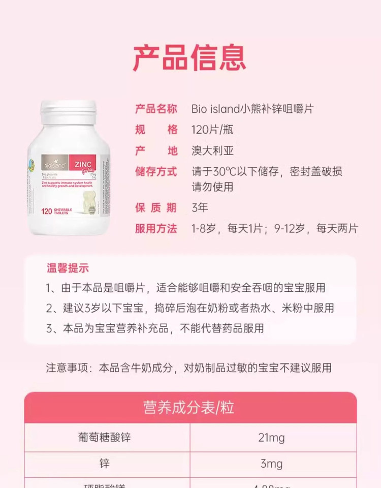 【保税仓】BioIsland/佰澳朗德儿童补锌咀嚼片120粒/瓶