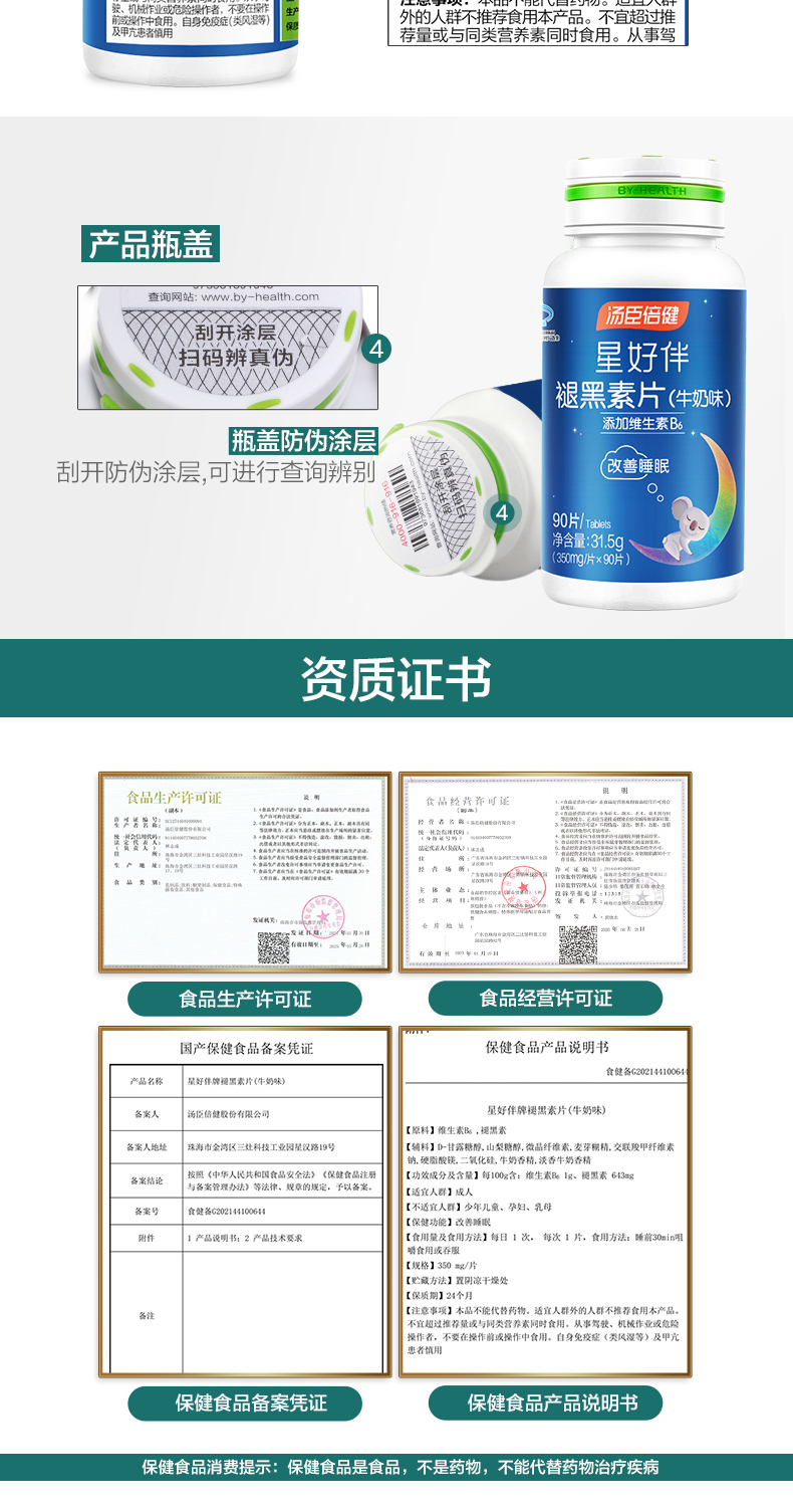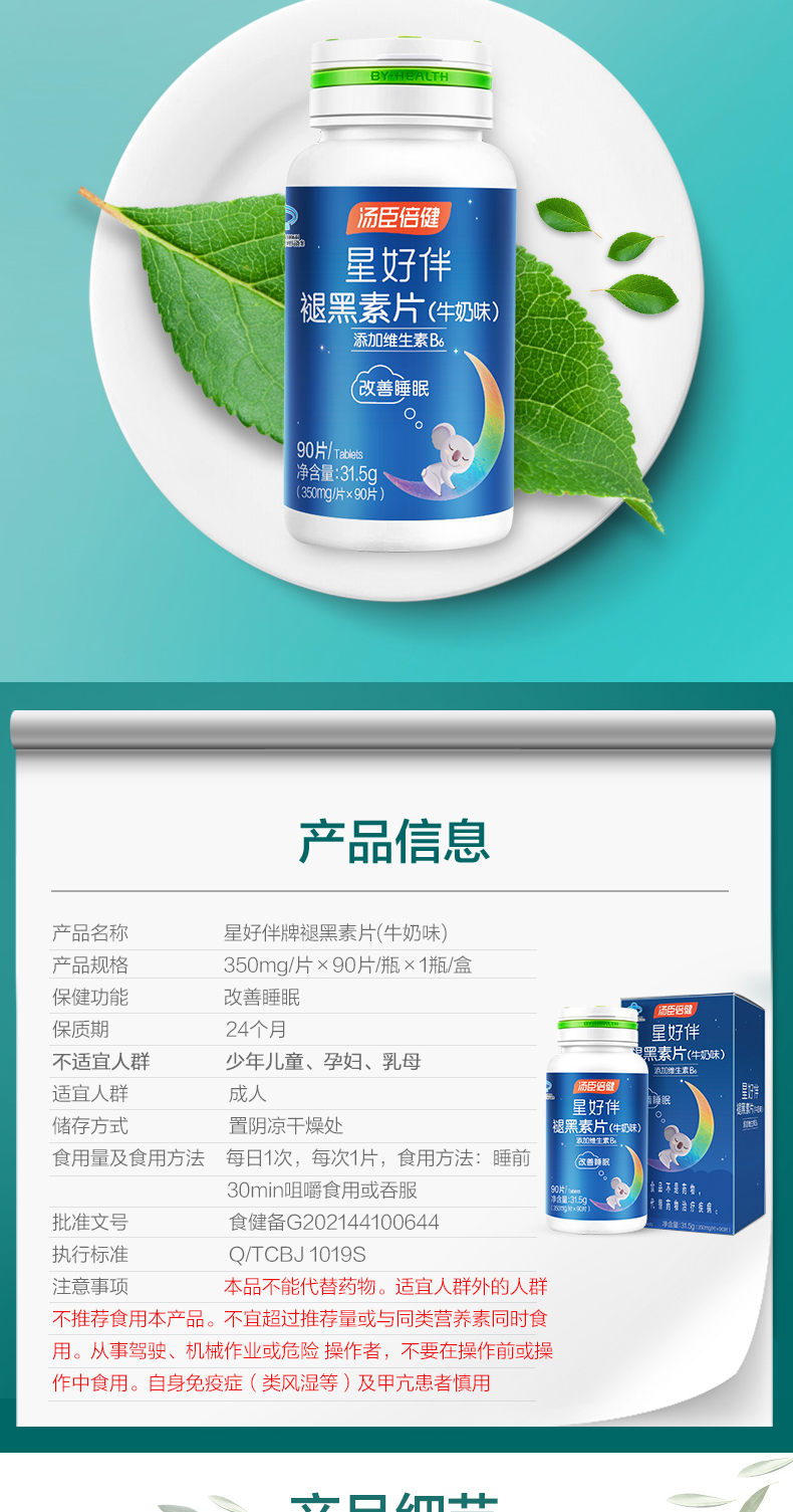 汤臣倍健星好伴褪黑素片(牛奶味)彩盒装(90片)