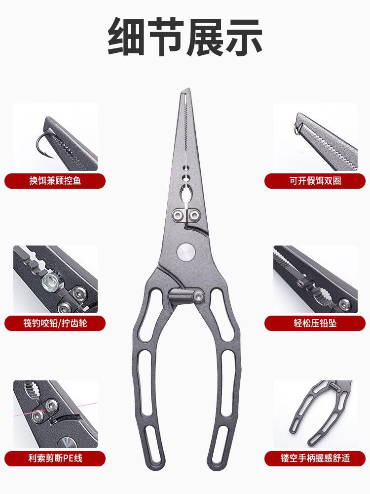 特氟龙涂层带锁不锈钢路亚钳长嘴钳嘴取钩钳路亚钳镂空摘钩钳