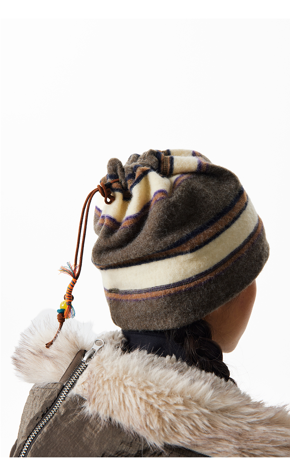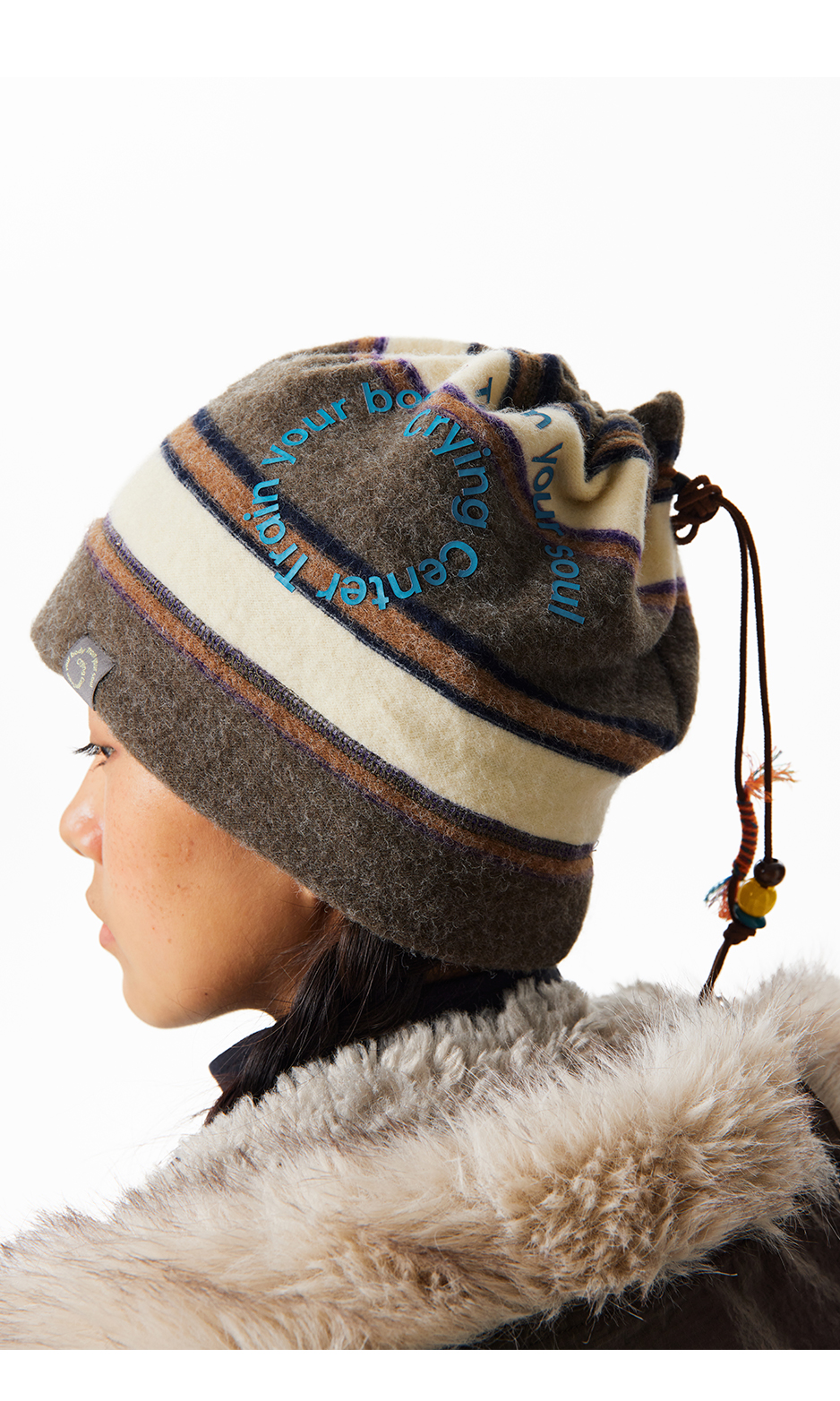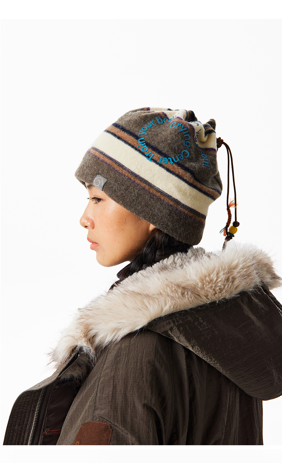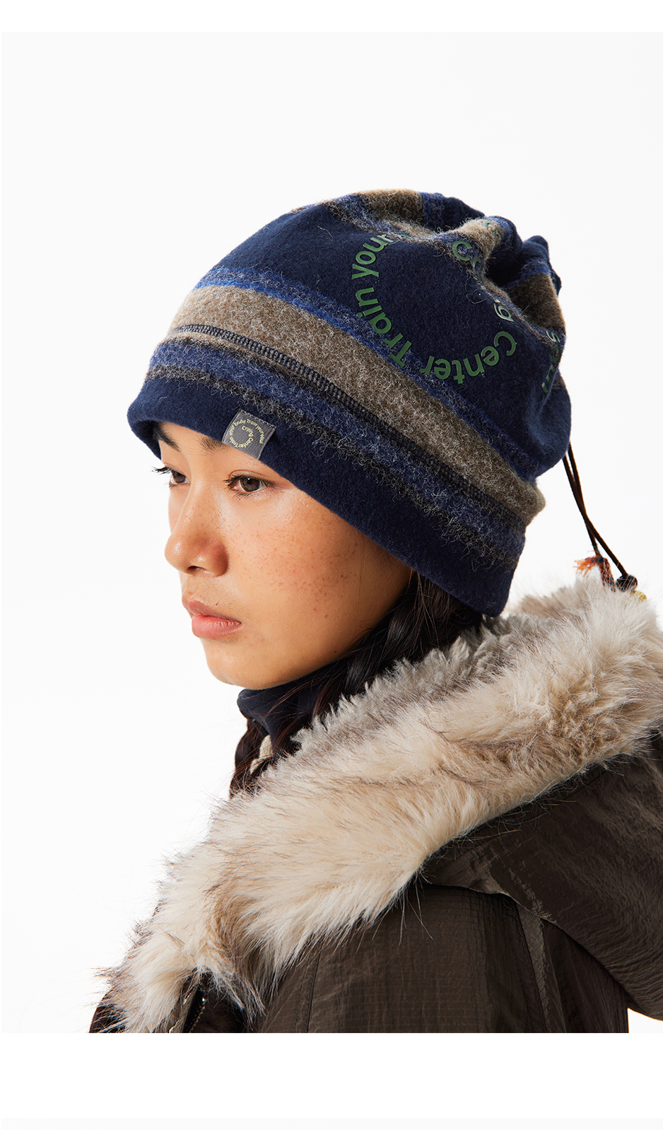 CryingCenter 漩涡条纹抓绒针织户外徒步秋冬保暖围脖护脸帽子