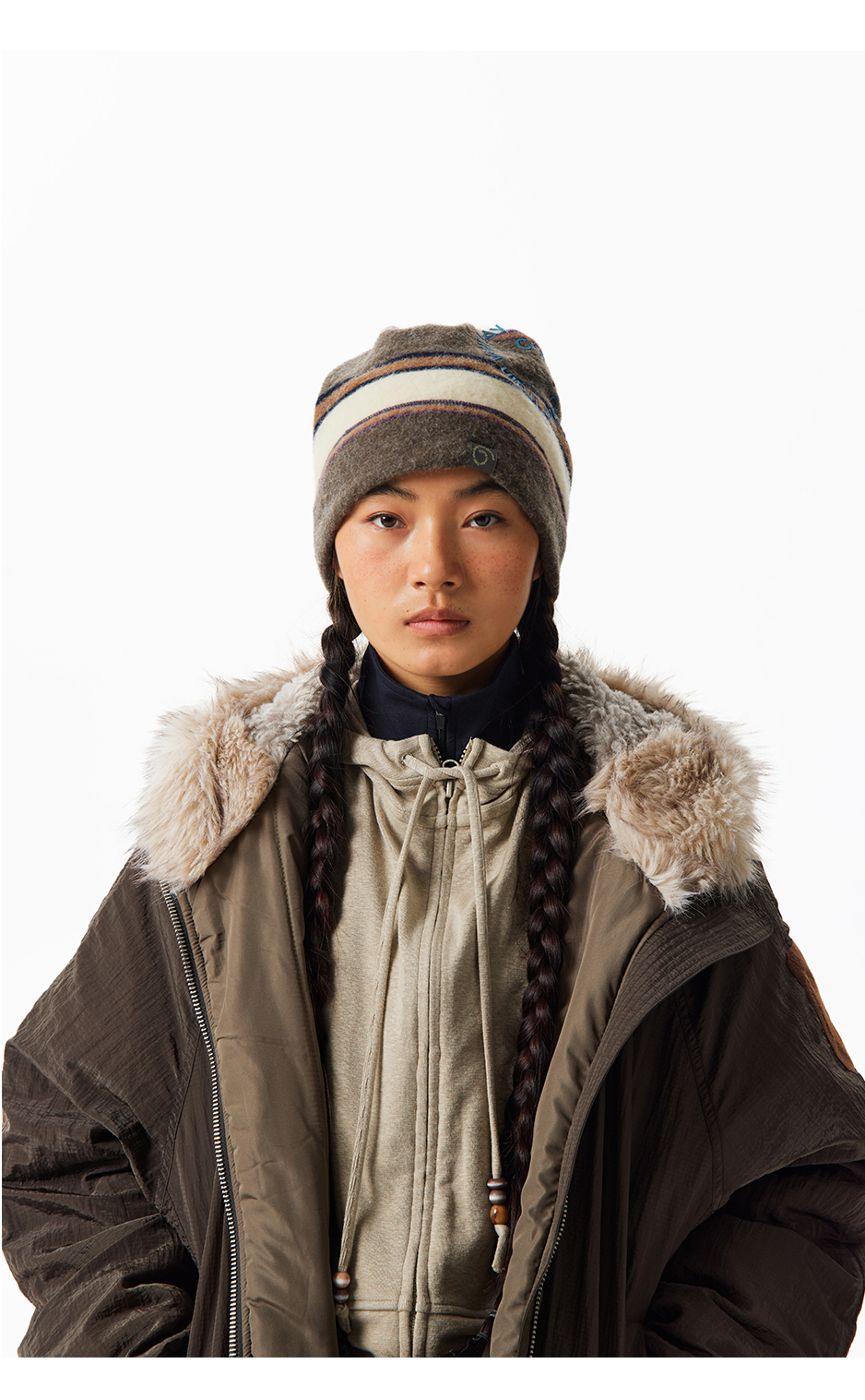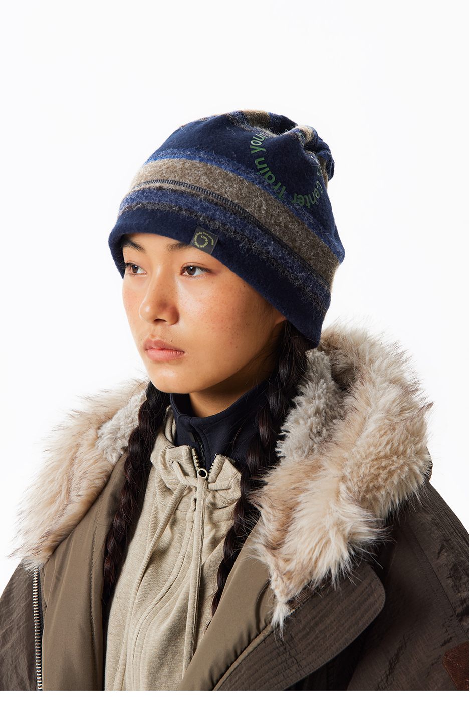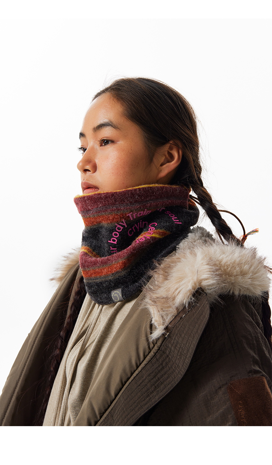 CryingCenter 漩涡条纹抓绒针织户外徒步秋冬保暖围脖护脸帽子