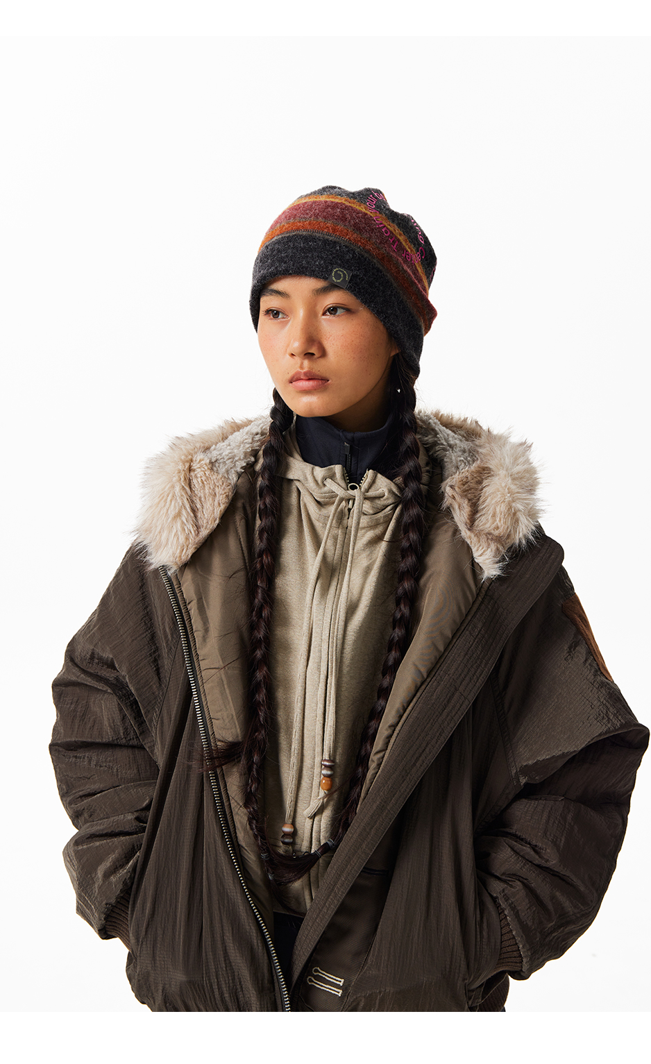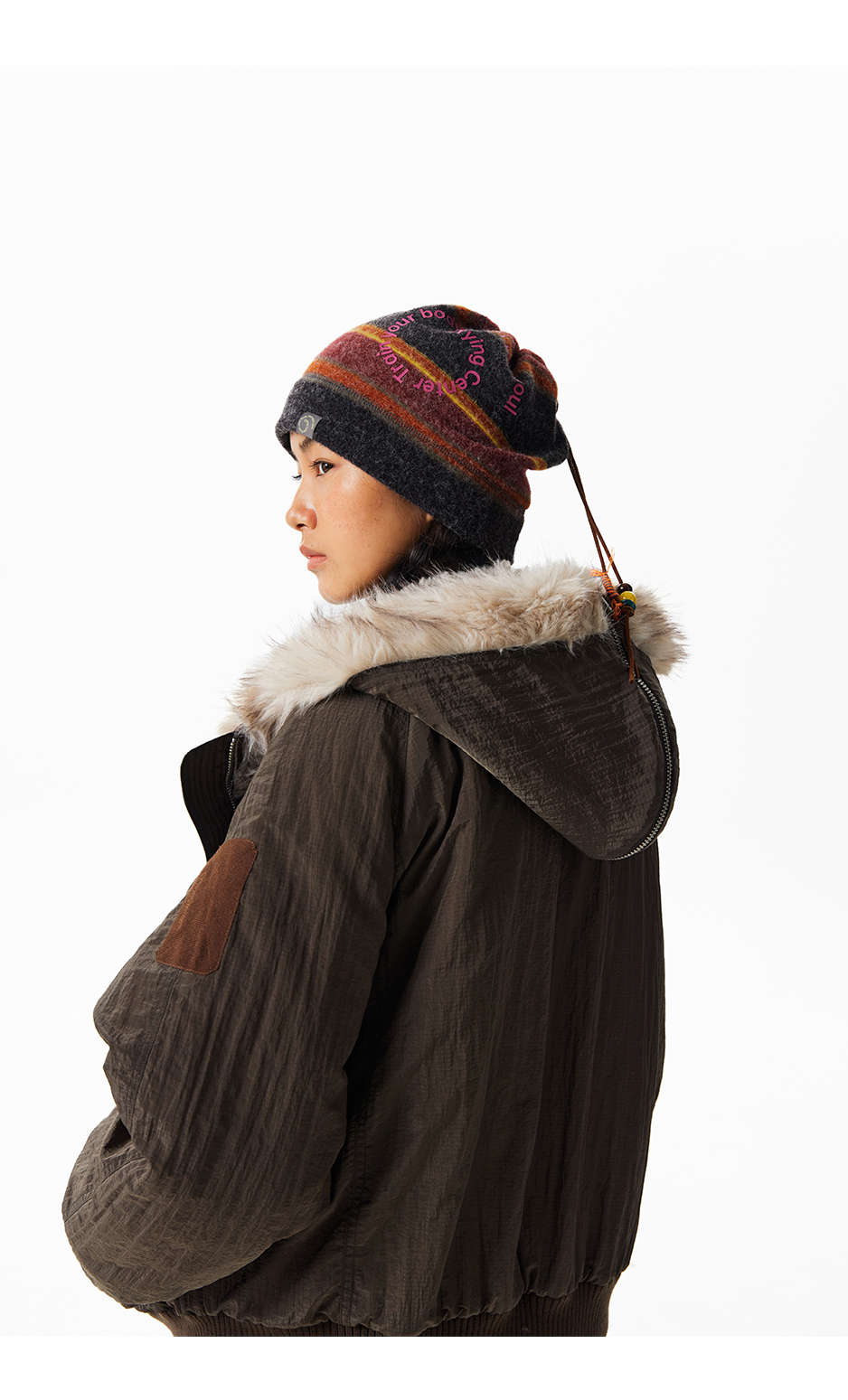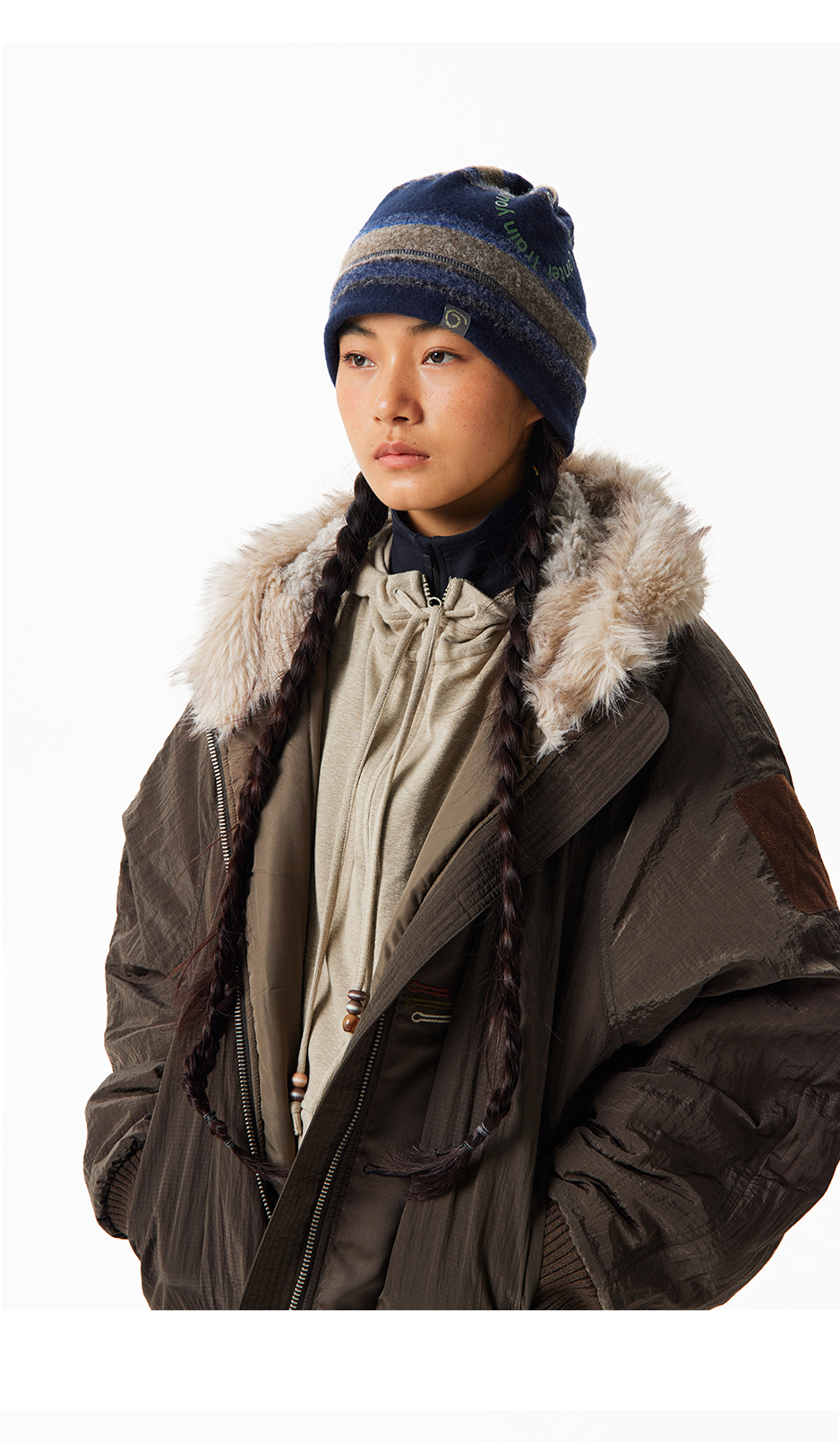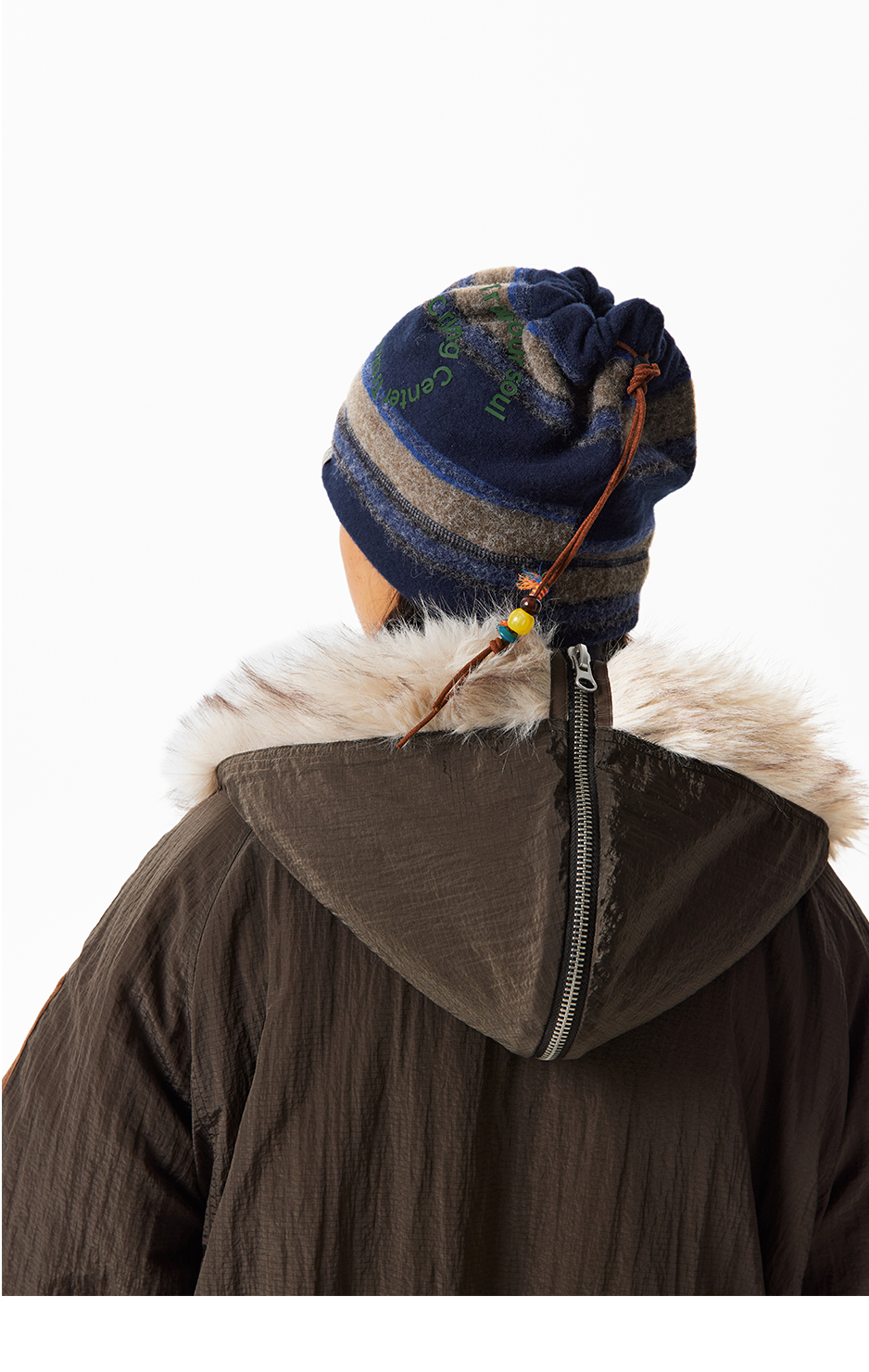 CryingCenter 漩涡条纹抓绒针织户外徒步秋冬保暖围脖护脸帽子