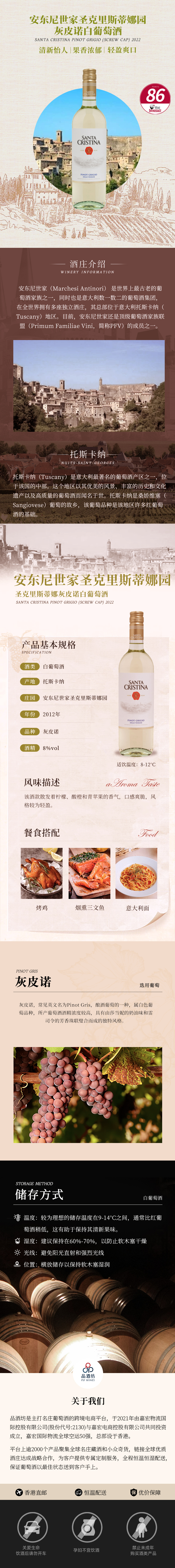 2022 Santa Cristina Pinot Grigio (Screw Cap) 圣克里斯蒂娜灰皮诺白葡萄酒
