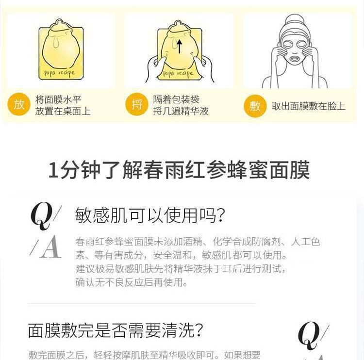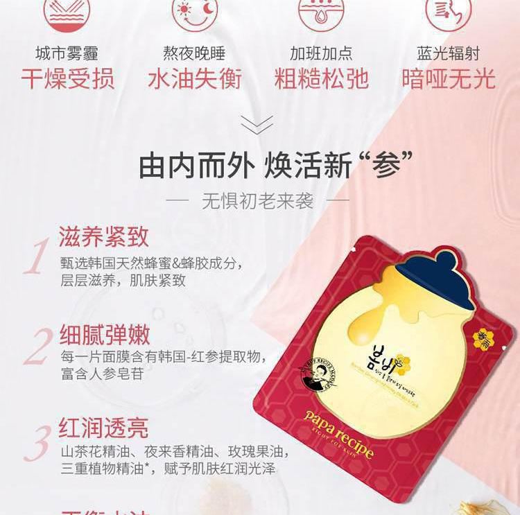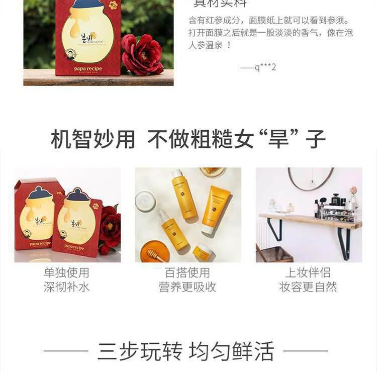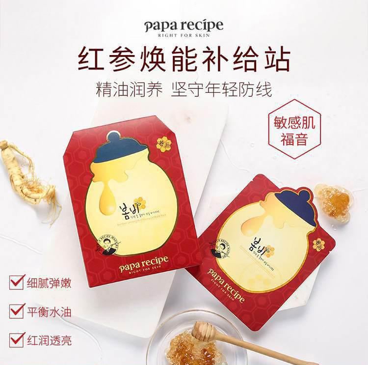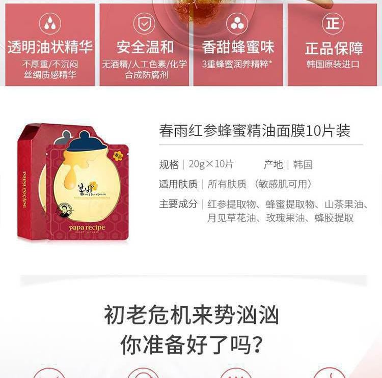 PaPa Recipe春雨 红参蜂蜜精油面膜 10片/盒 红色