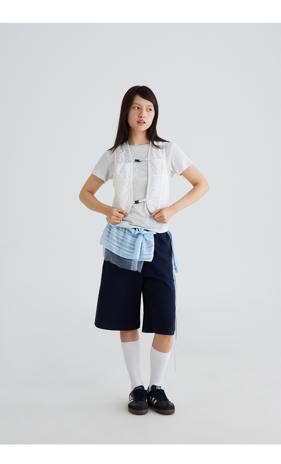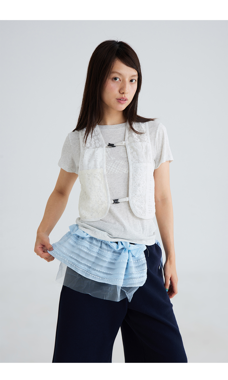 CryingCenter 两面可穿拼接蕾丝百搭马甲 哭喊中心