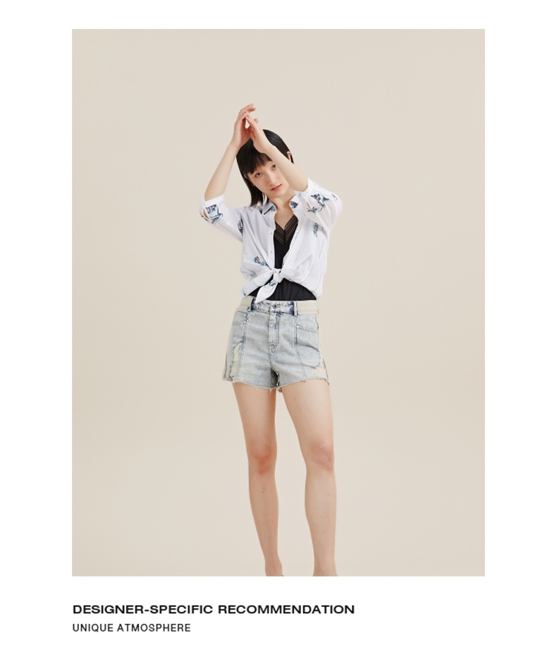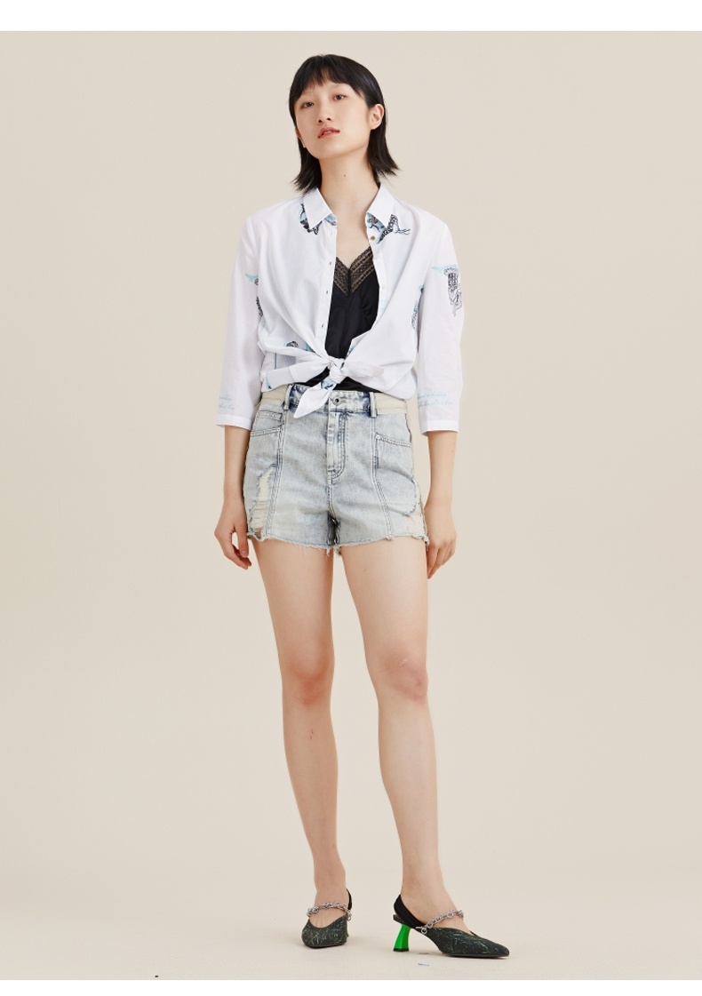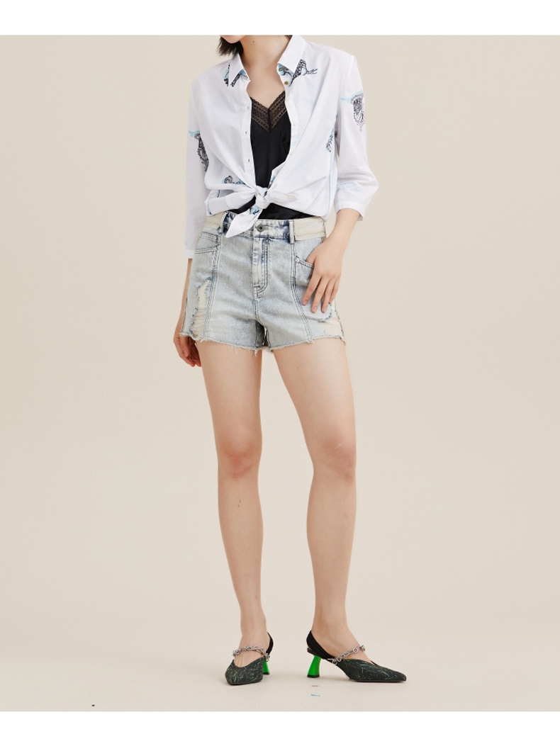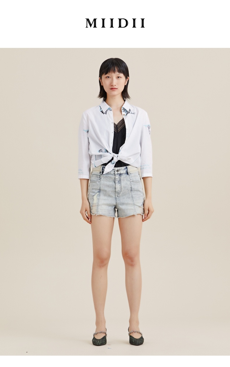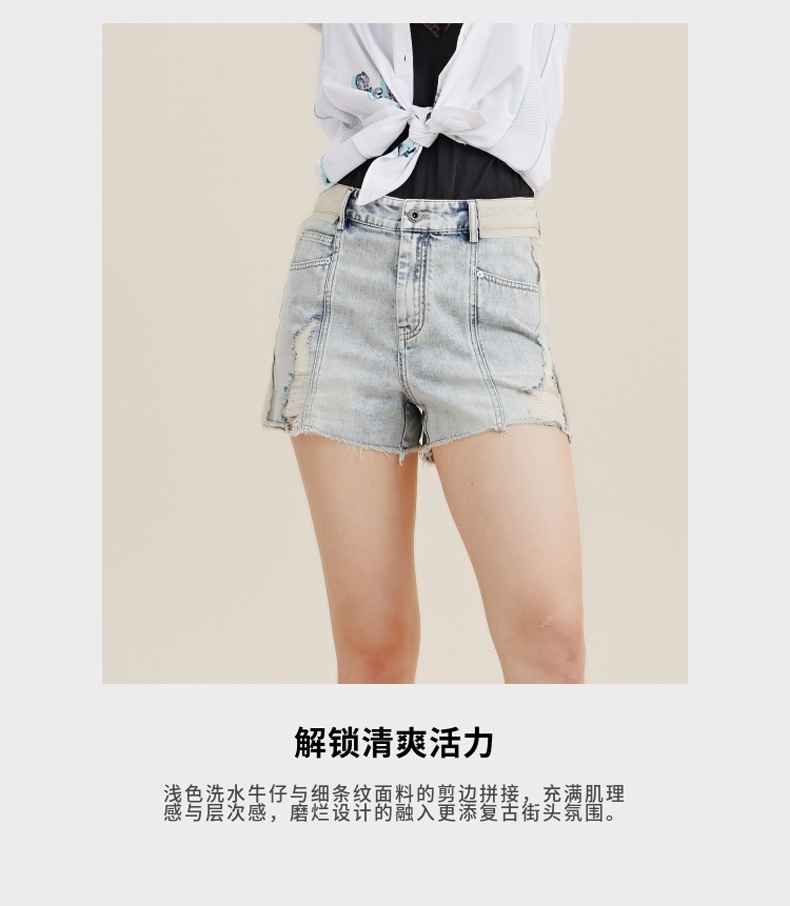 MIIDII/谜底牛仔短裤女21夏新品个性洗水破洞休闲运动212MK0716