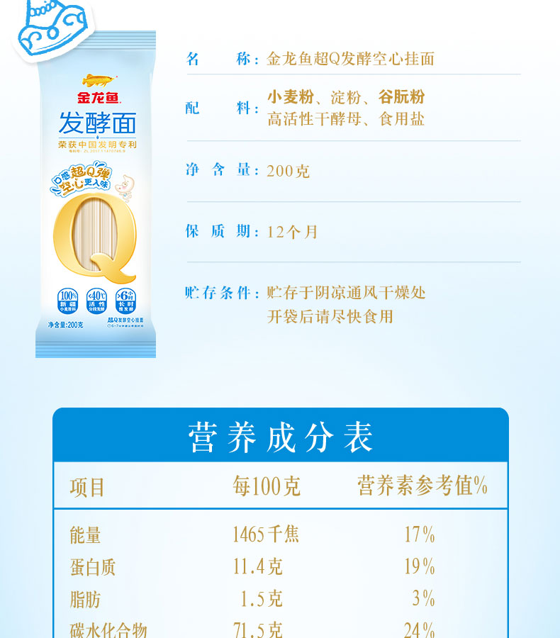金龙鱼发酵面系列超Q发酵空心挂面200g*5