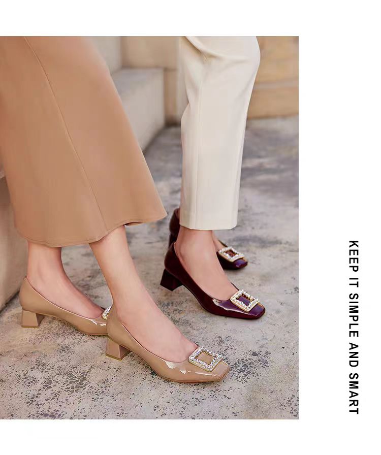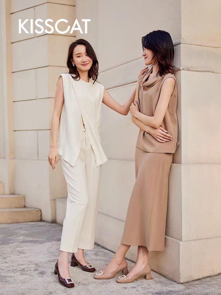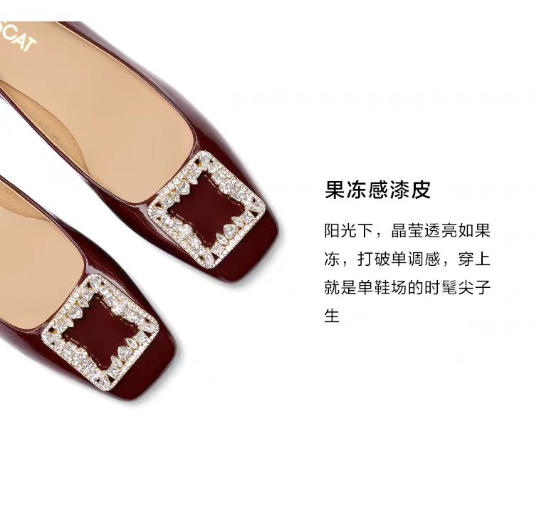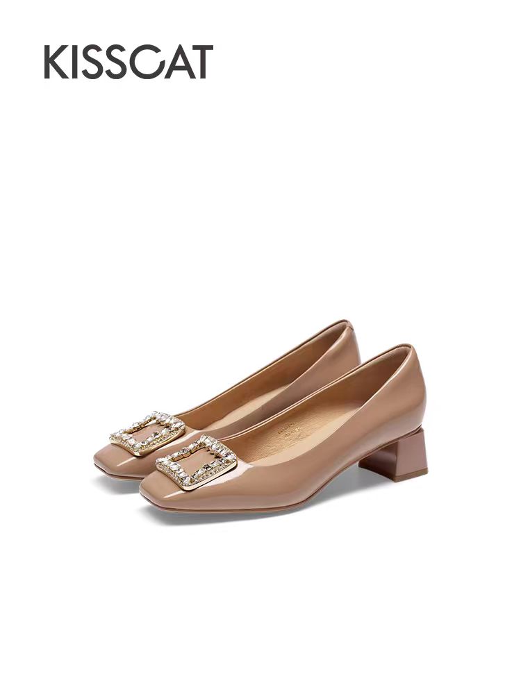 KISSCAT03340000337接吻猫[繁华系列]24年新款气质[摘星鞋]水钻花托法式单鞋