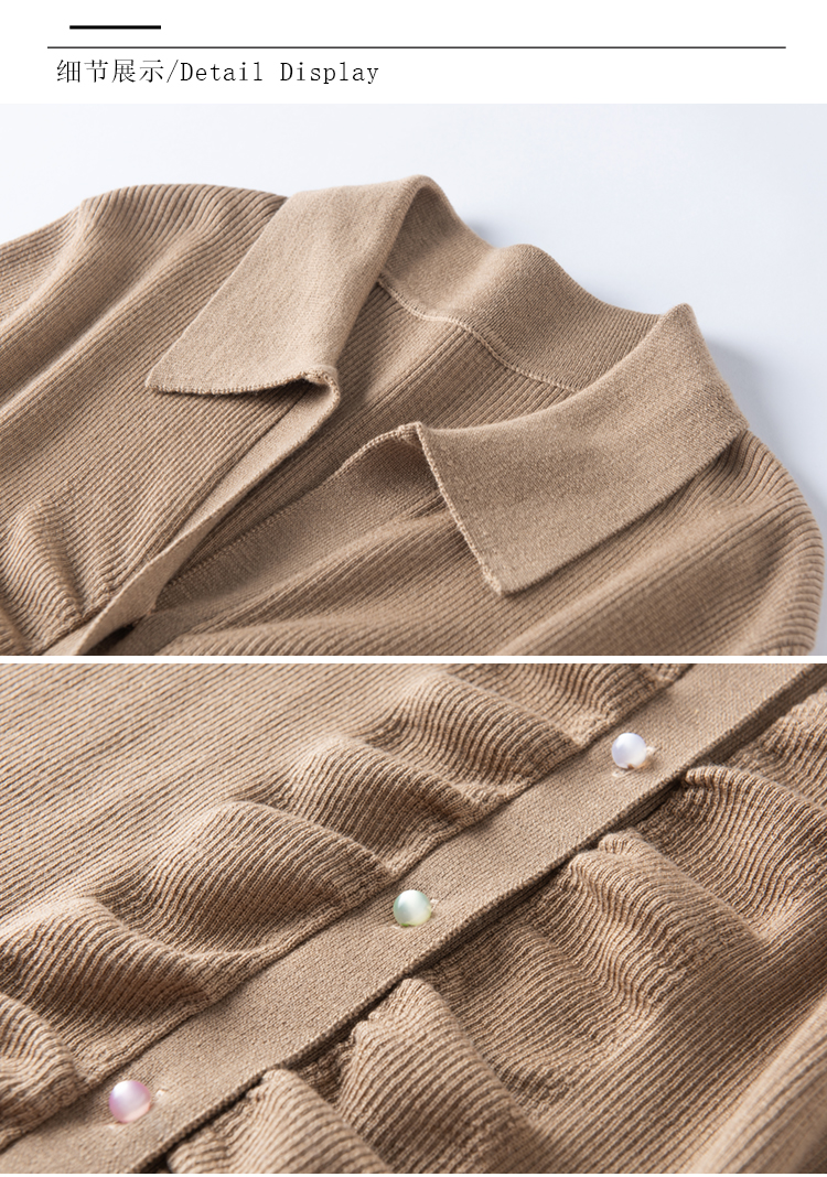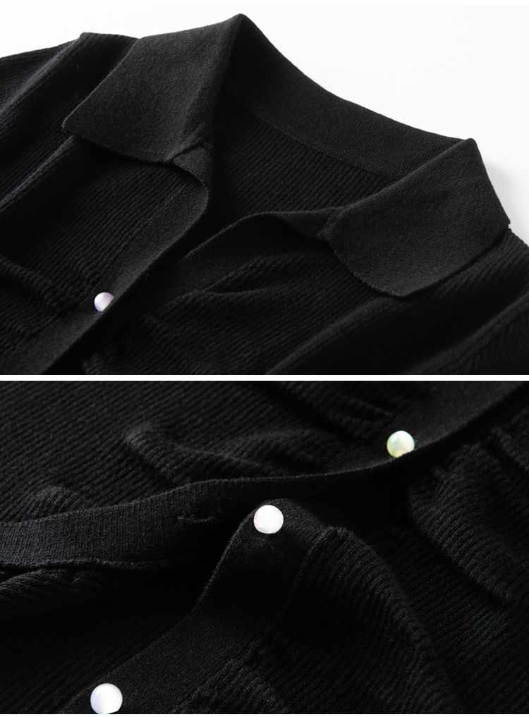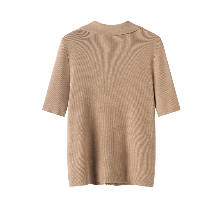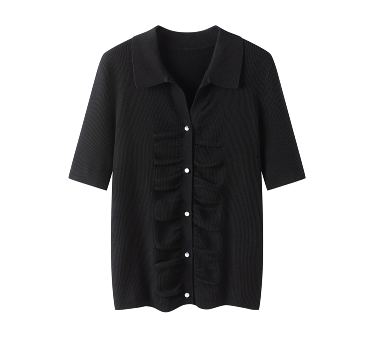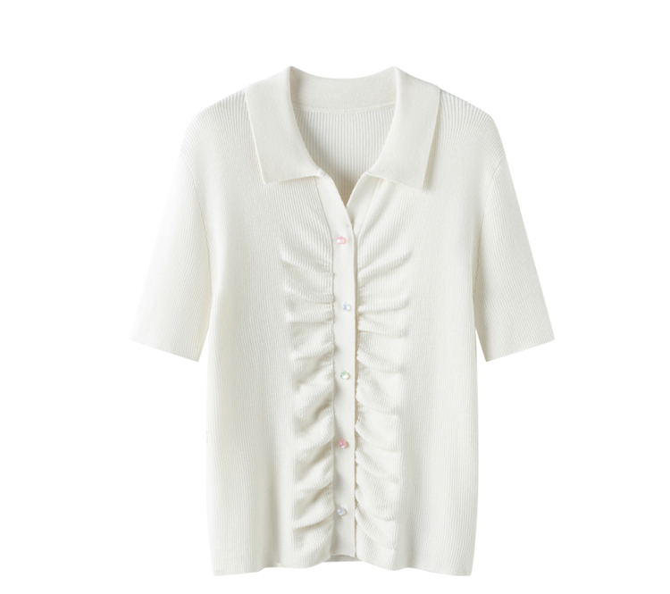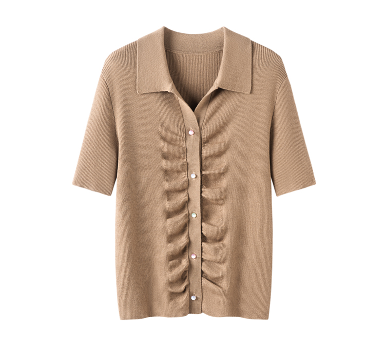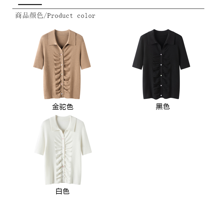 S·Y·C【彩扣领衫】羊毛+桑蚕丝Polo领褶皱设计针织开衫短袖SYM25049