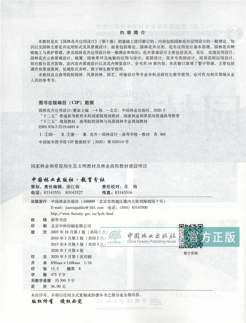园林花卉应用设计 第4版 0491 董丽主编 普通高等教育十三五规划教材 高等院校园林与风景园林专*业规划教材 中国林业出版社