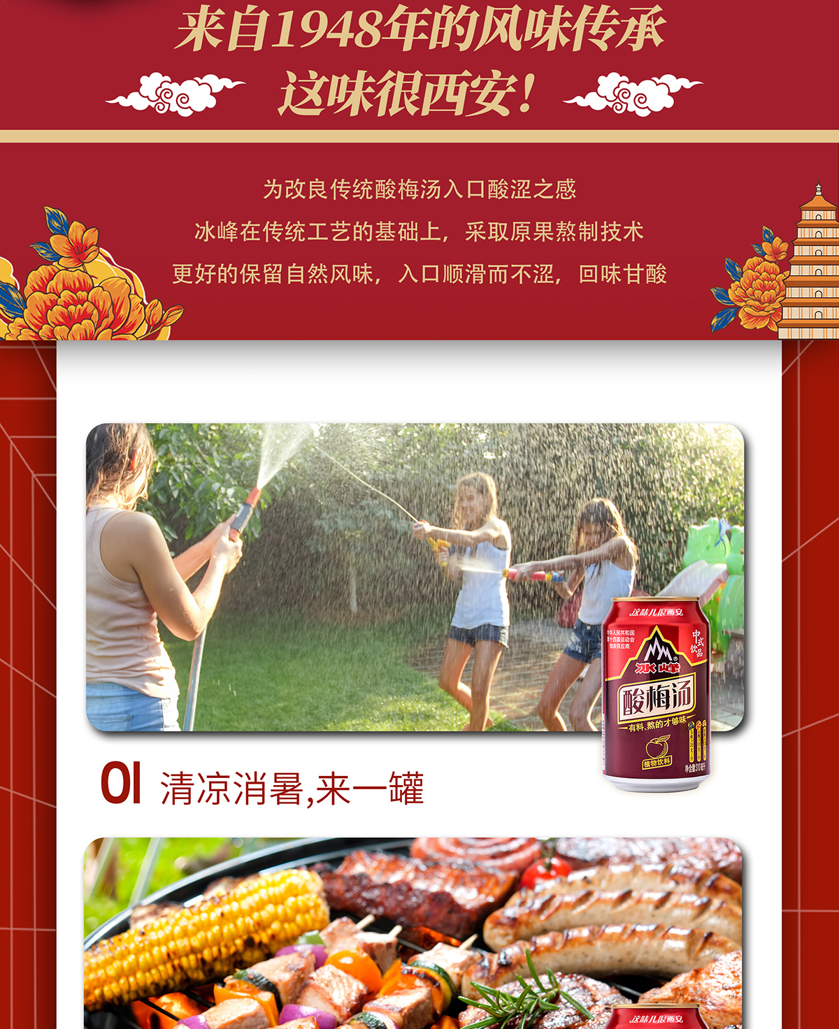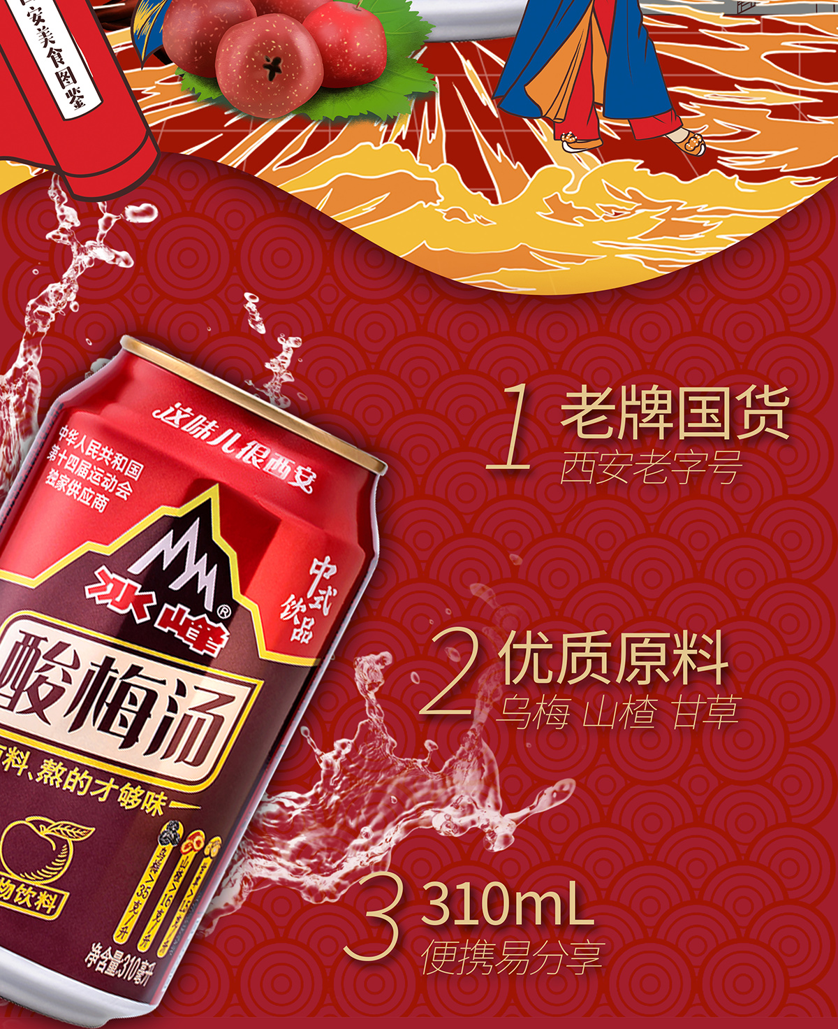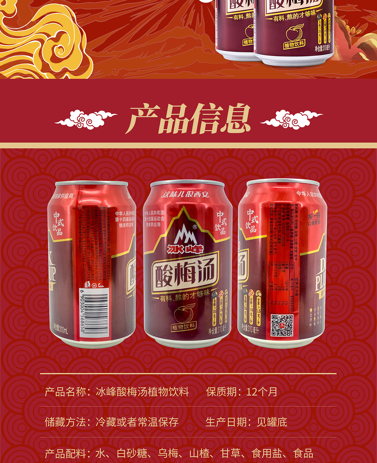 冰峰 酸梅汤饮料整箱 310ml*24罐装 西安老字号 传统古法熬制开胃酸梅汤果汁饮品(新老包装随机发货)