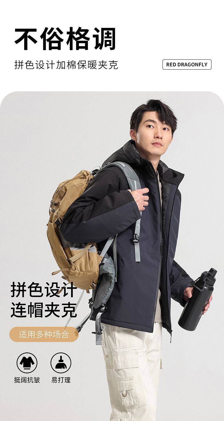 优选丨红蜻蜓外套男秋冬季防风宽松户外上衣休闲潮流连帽开衫运动夹克男