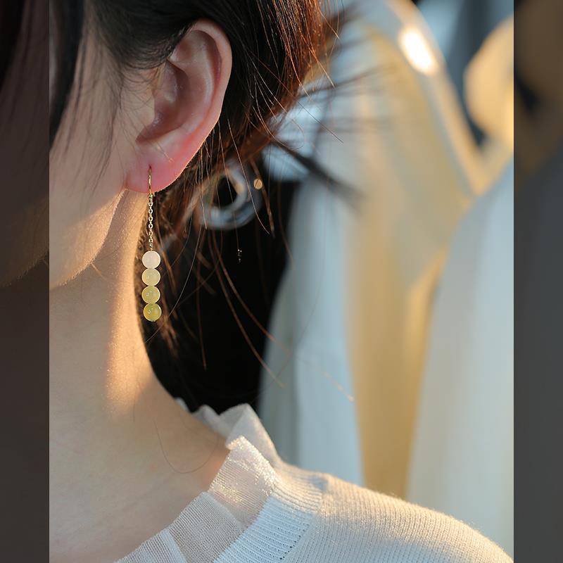 【春晖·和田玉渐变耳坠】敦煌小众天然和田玉耳坠耳勾女 精致小清新渐变玉石耳饰串珠耳钉小众感