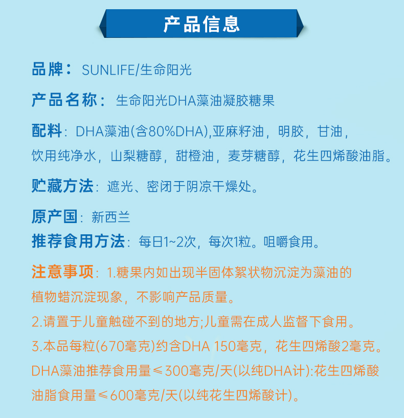 SUNLIFE 生命阳光 DHA藻油凝胶糖果 60粒/瓶