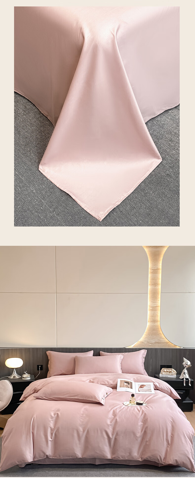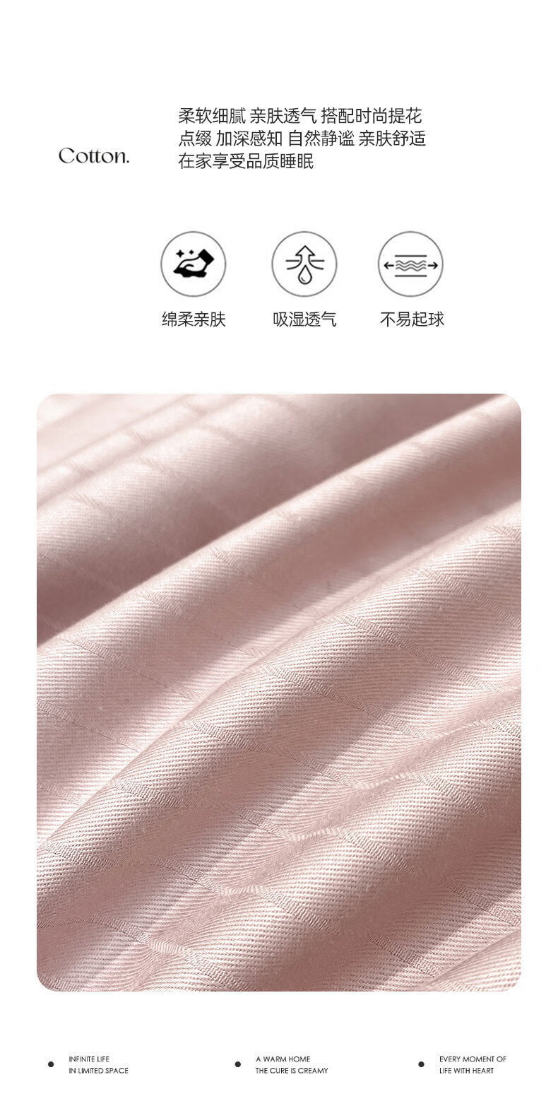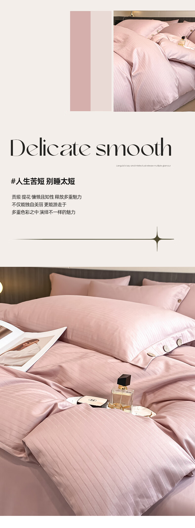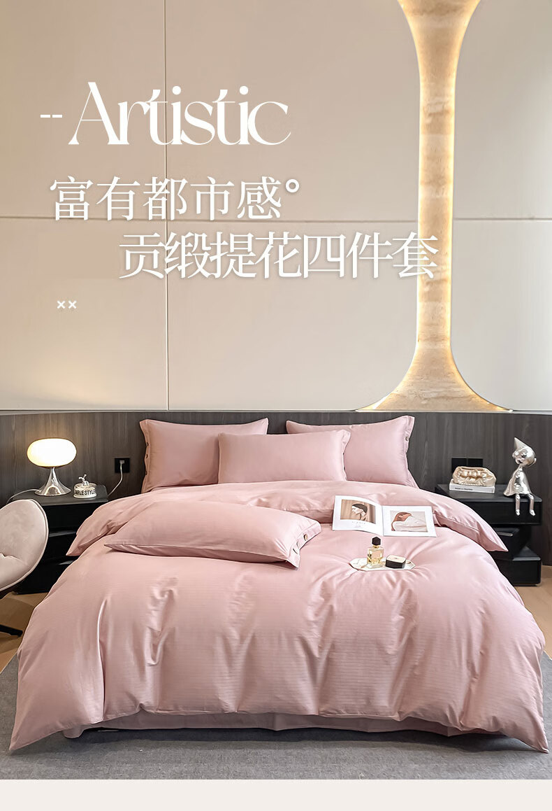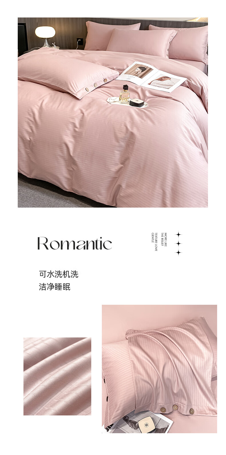 百丽安娜纽扣款全棉提花贡缎四件套粉色