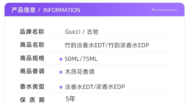【保税仓】Gucci古驰竹韵女士淡香水75ml