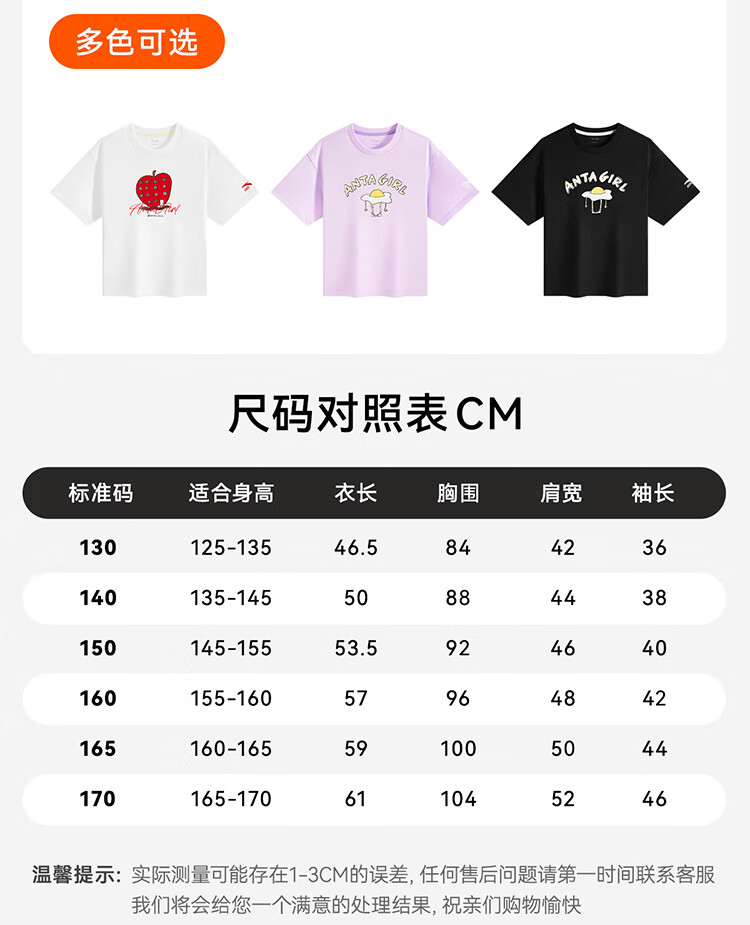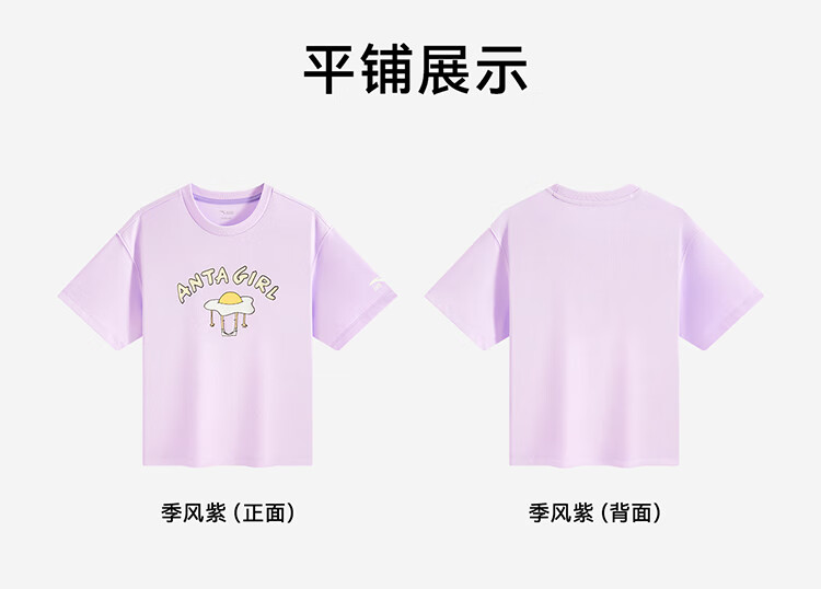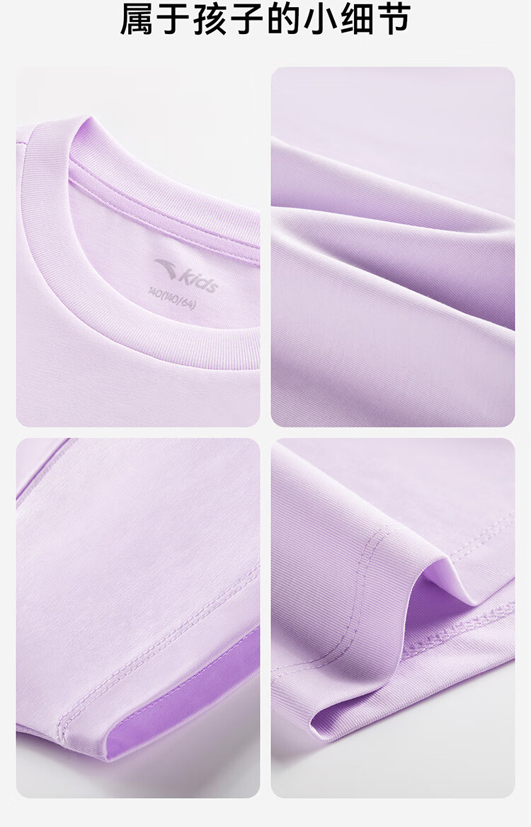 安踏儿童短袖T恤女大童2025夏透气亲肤中大童圆领短袖潮362528106