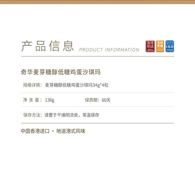 【麦芽糖醇低糖沙琪玛4粒装】进口零食特产早餐中国香港【奇华饼家】