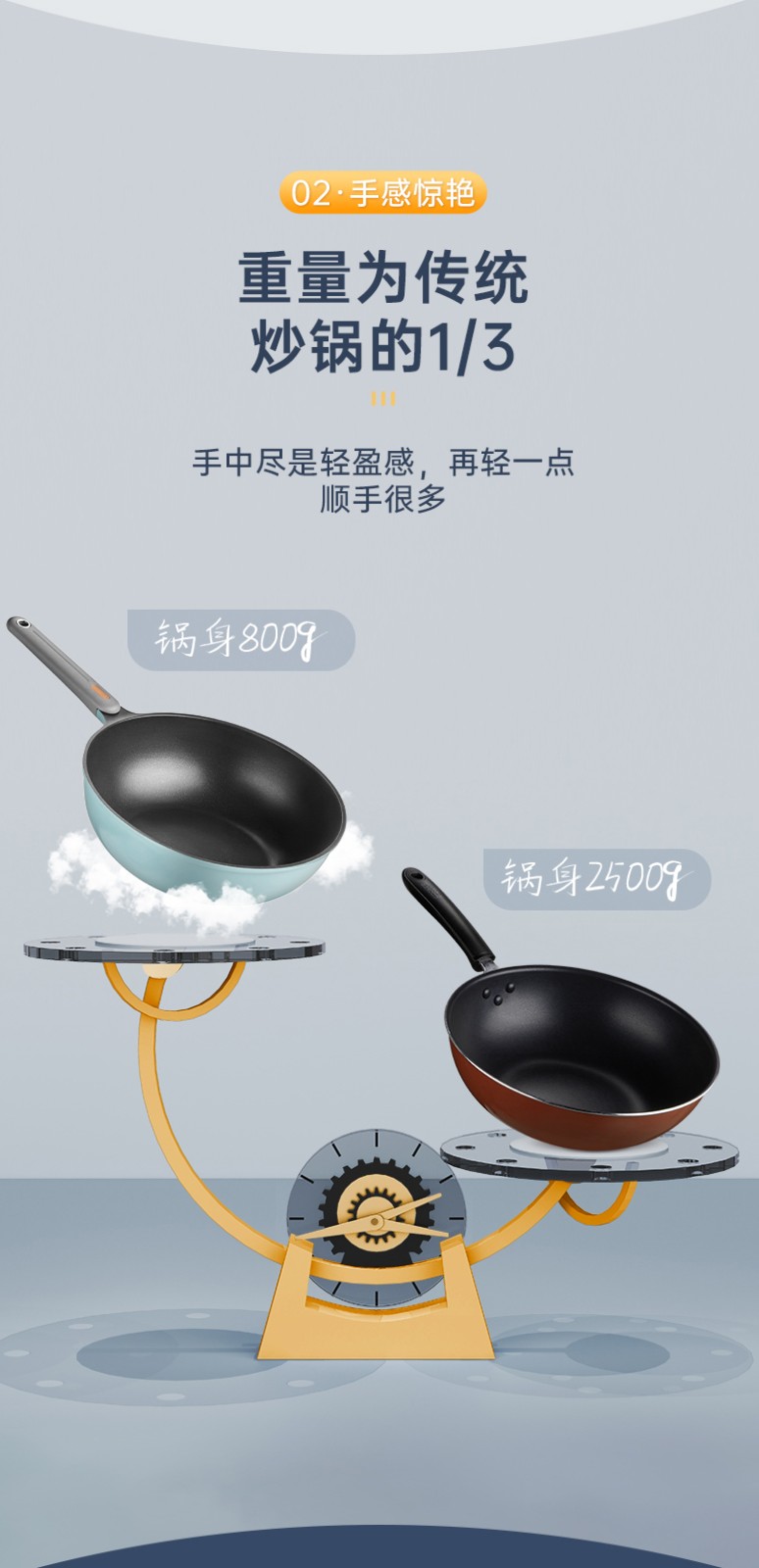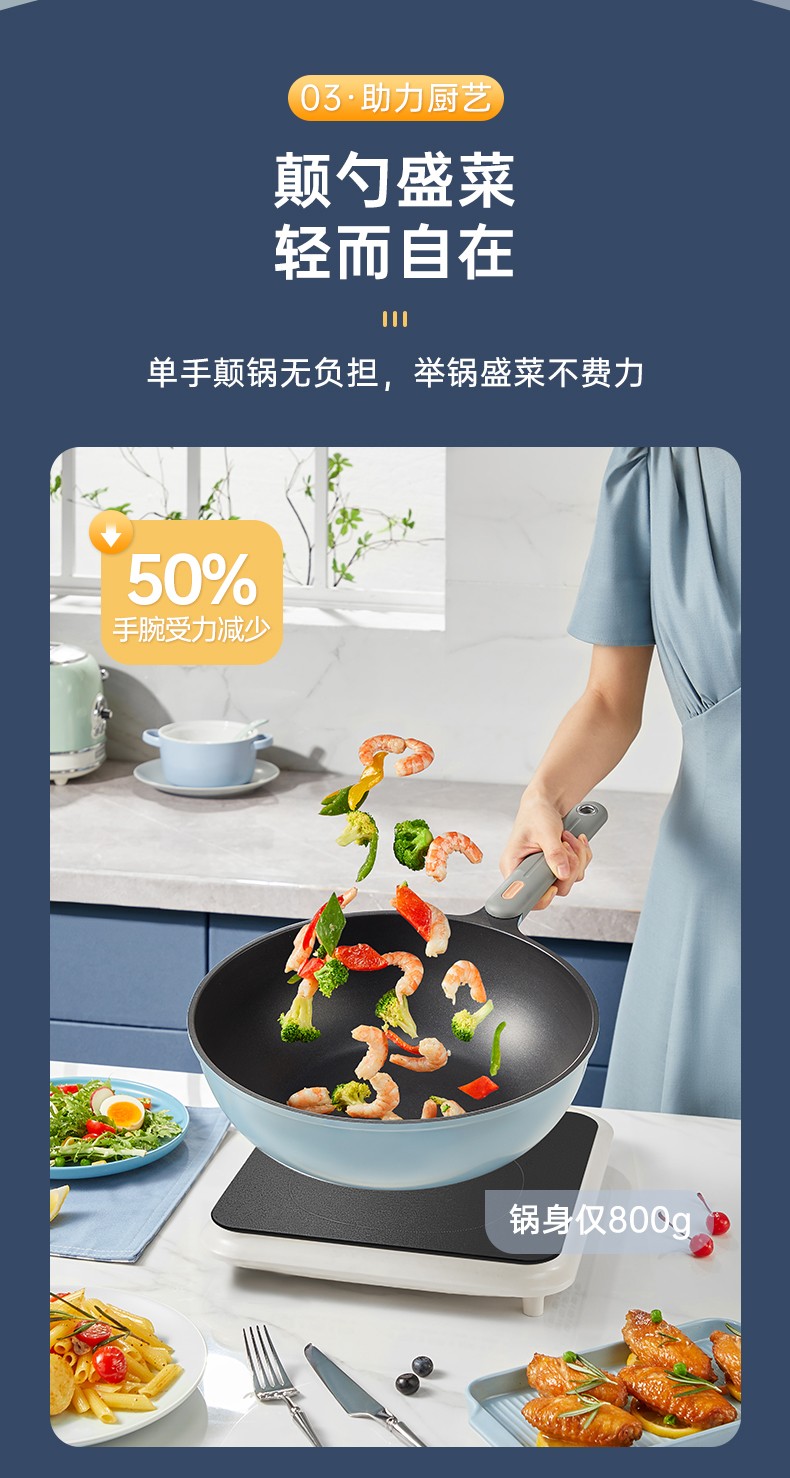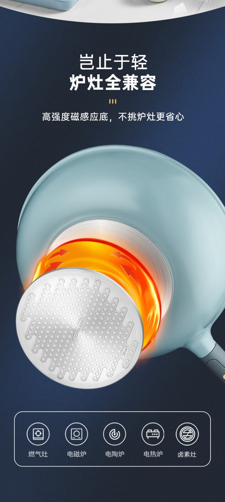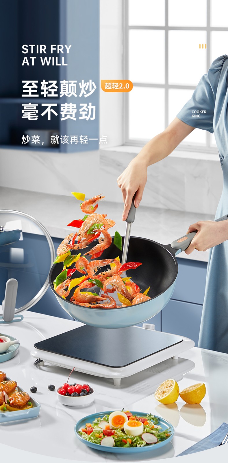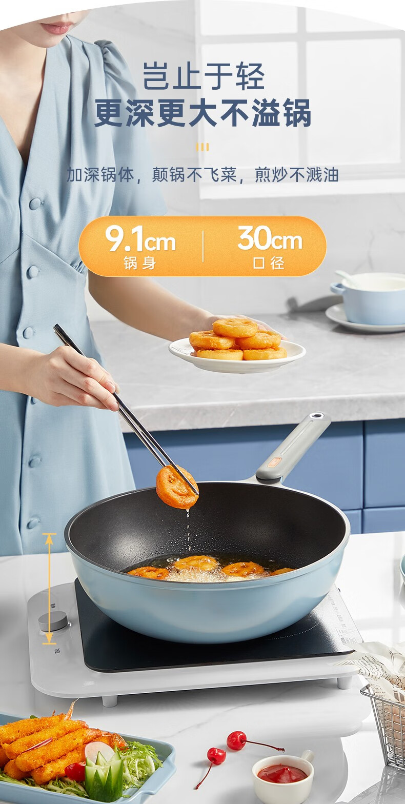 炊大皇(COOKER KING) 超轻锅不粘锅炒锅30cm家用电磁炉燃气灶适用女士专用平底无油烟锅炒菜锅 CKNC6430BF