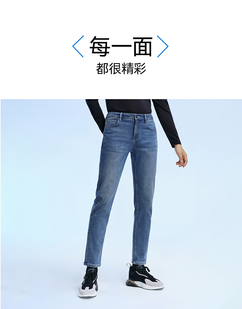 拇指白小衫保暖直筒牛仔裤至简品质系列