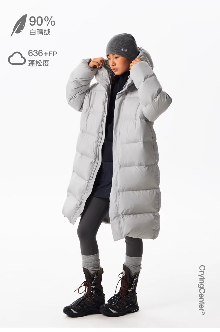 CryingCenter90白鸭绒长款防绒锁温加厚日常连帽羽绒服外套男女款