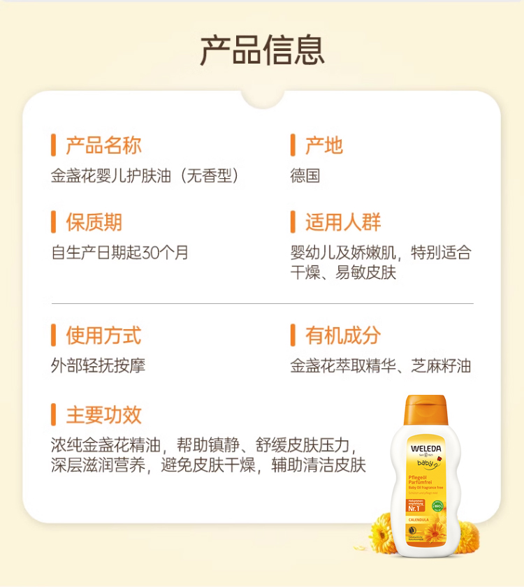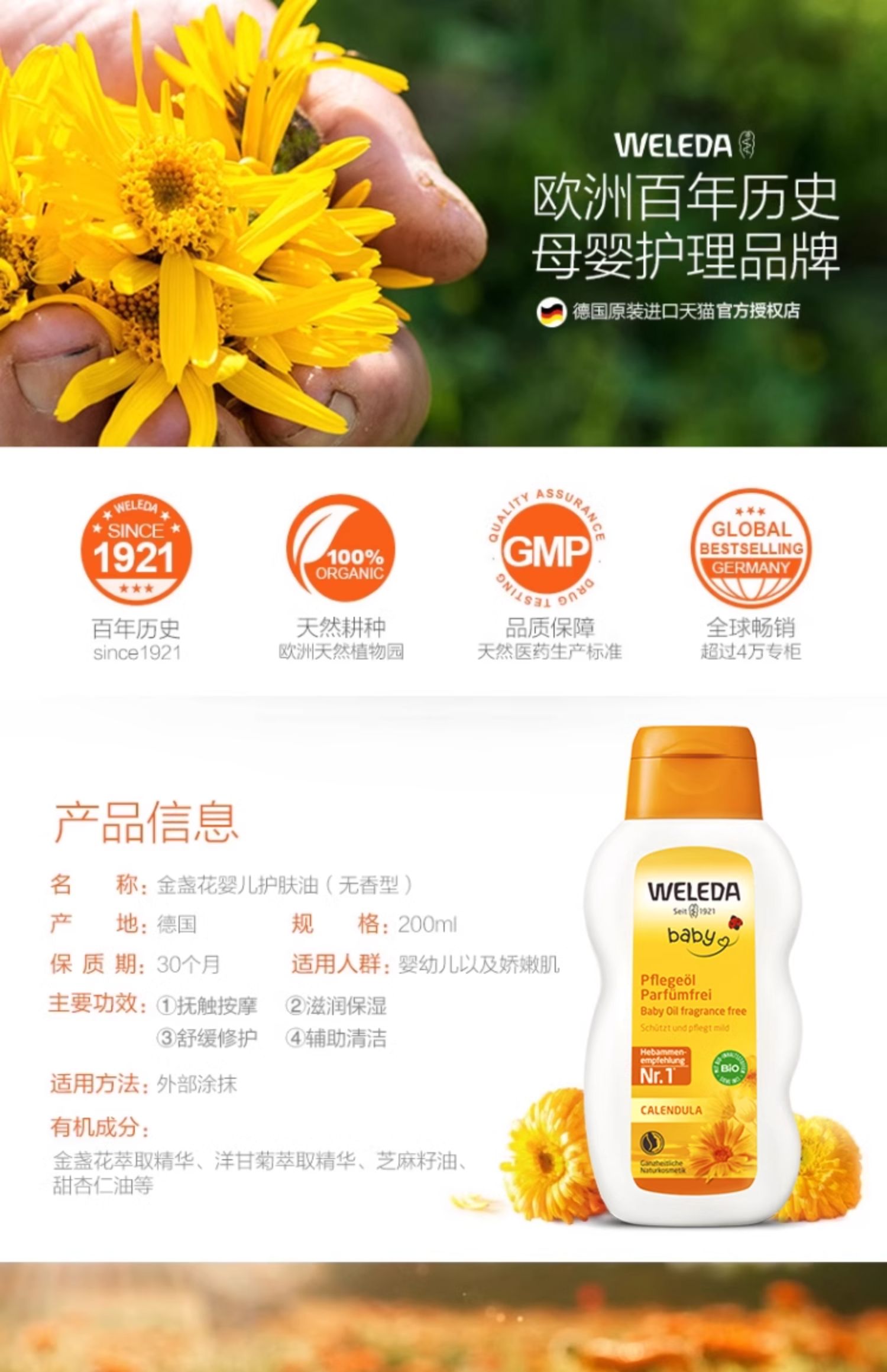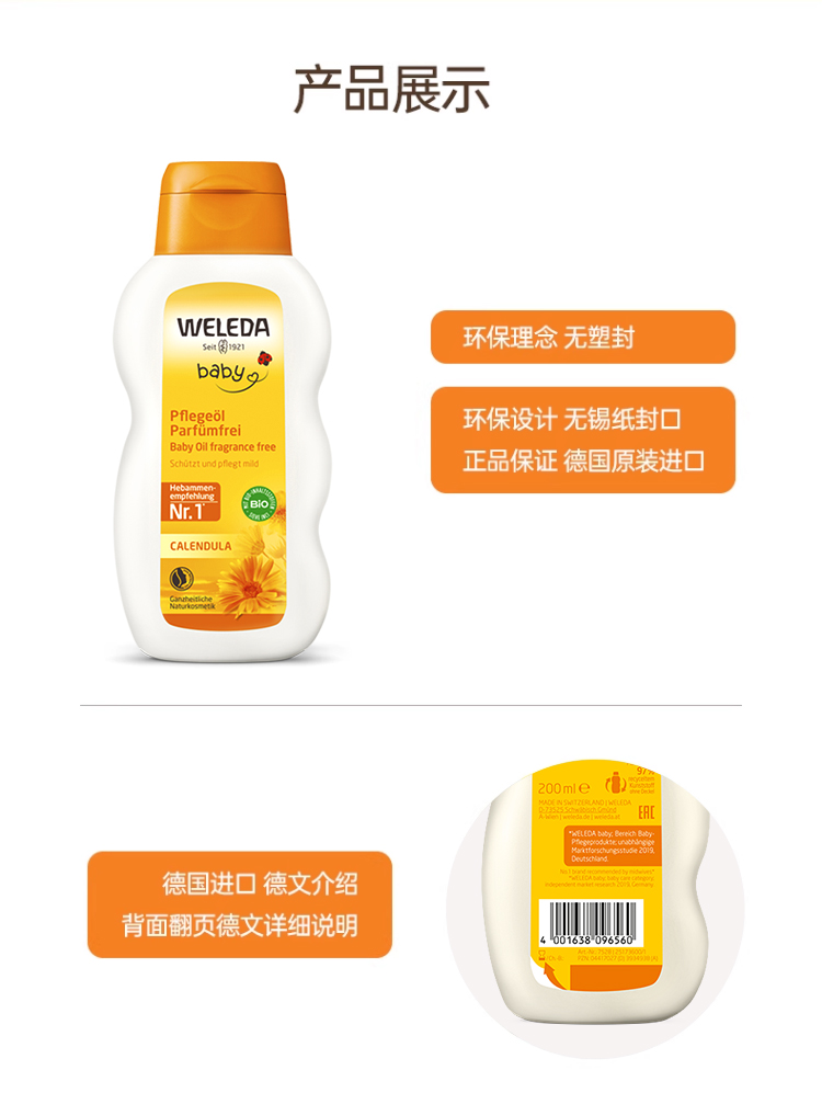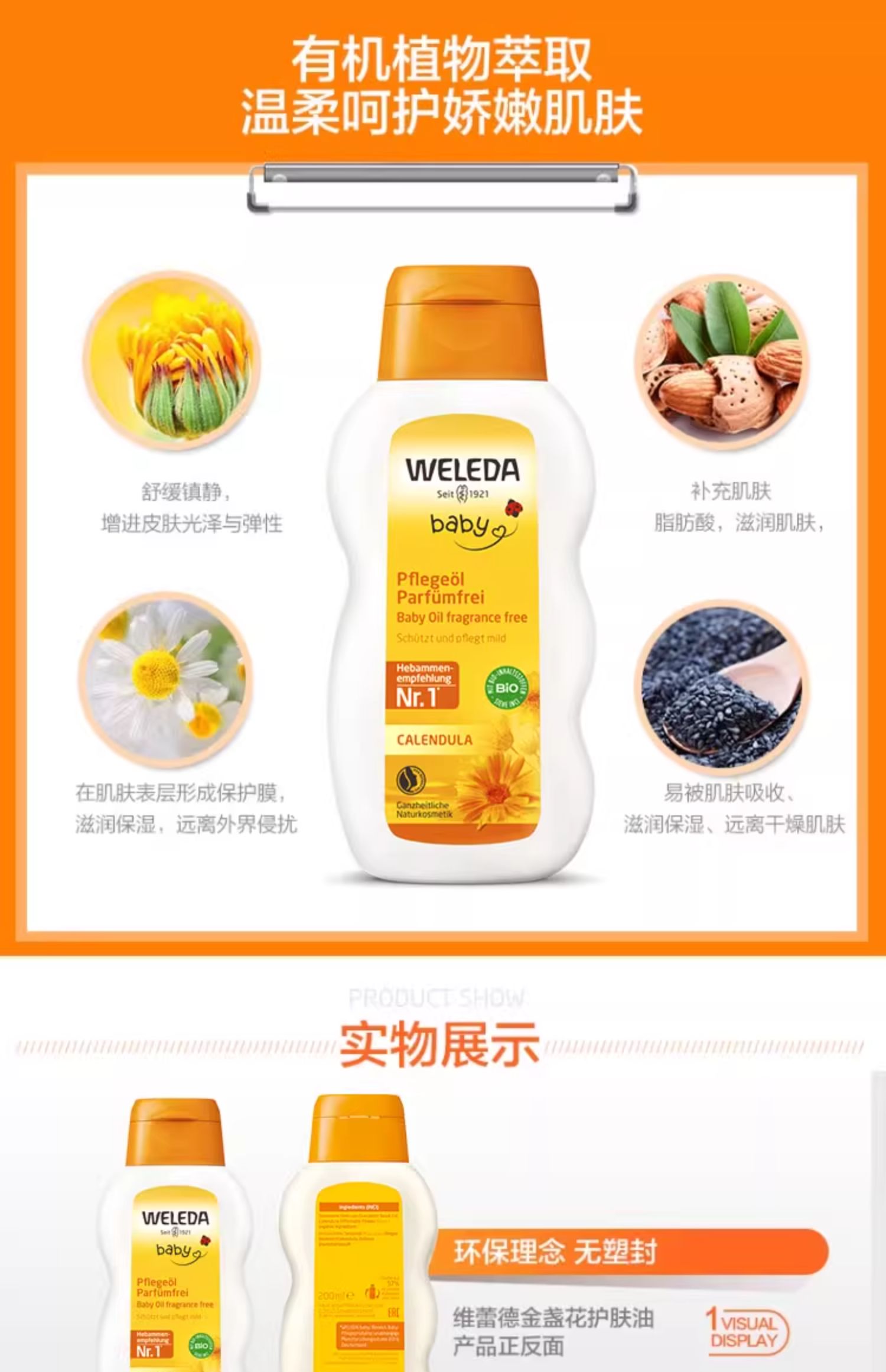 【保税仓】WELEDA维蕾德金盏花婴儿护肤油无香200ML