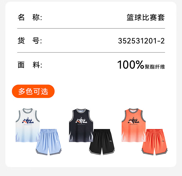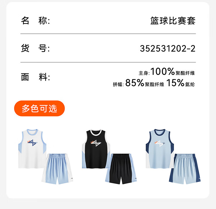 安踏儿童套装男大童篮球系列运动透气篮球比赛套352531201