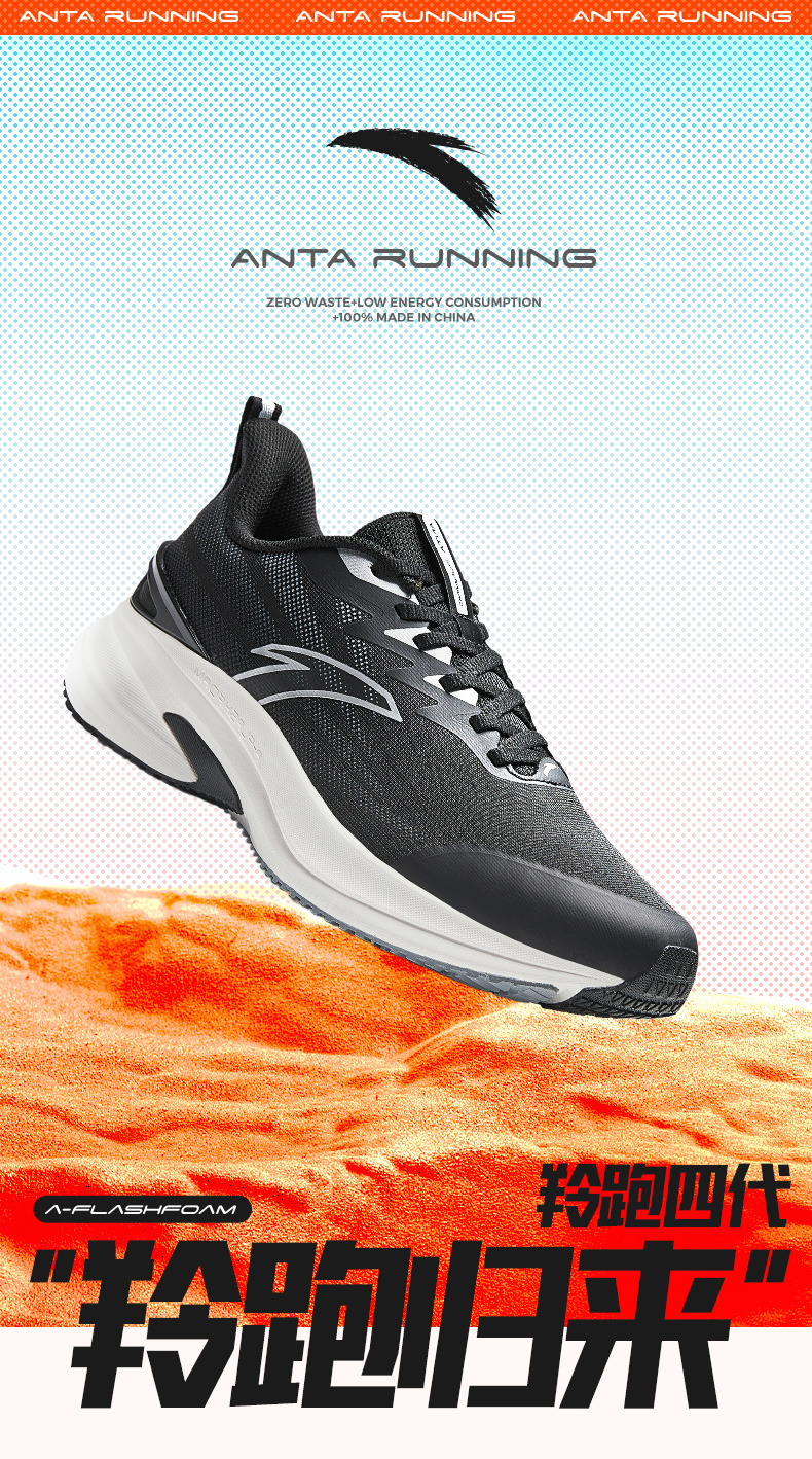 安踏羚跑4代 | 2025夏 羚跑透气体测缓震运动跑鞋112535585R