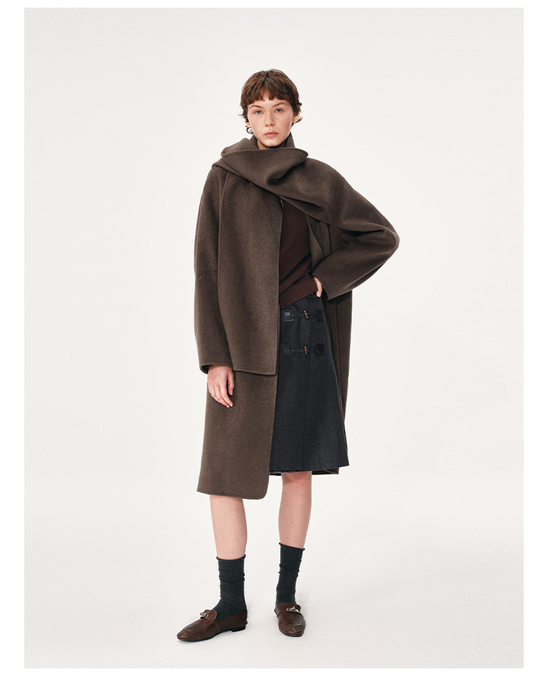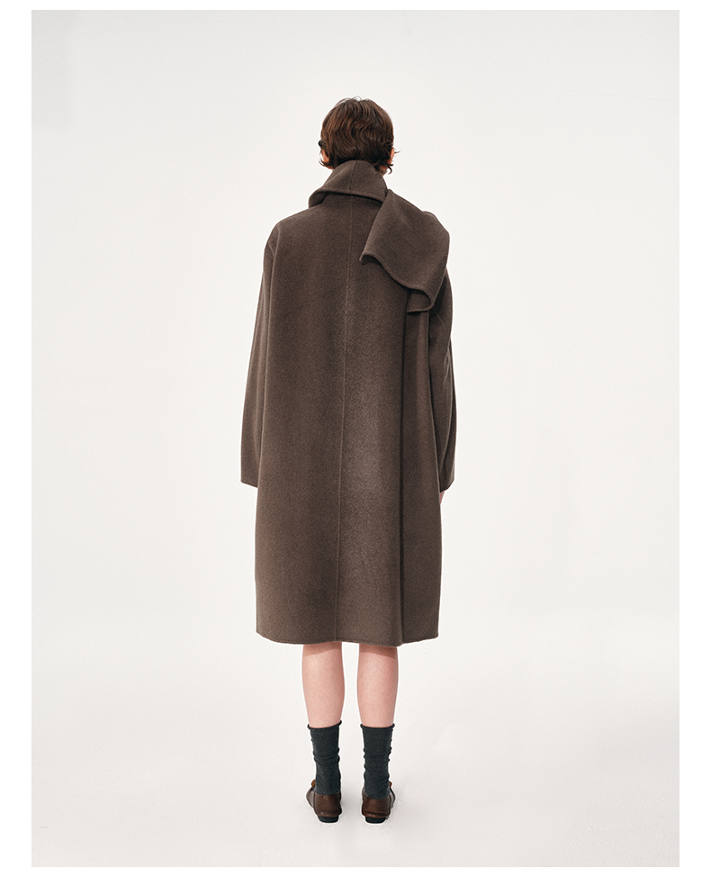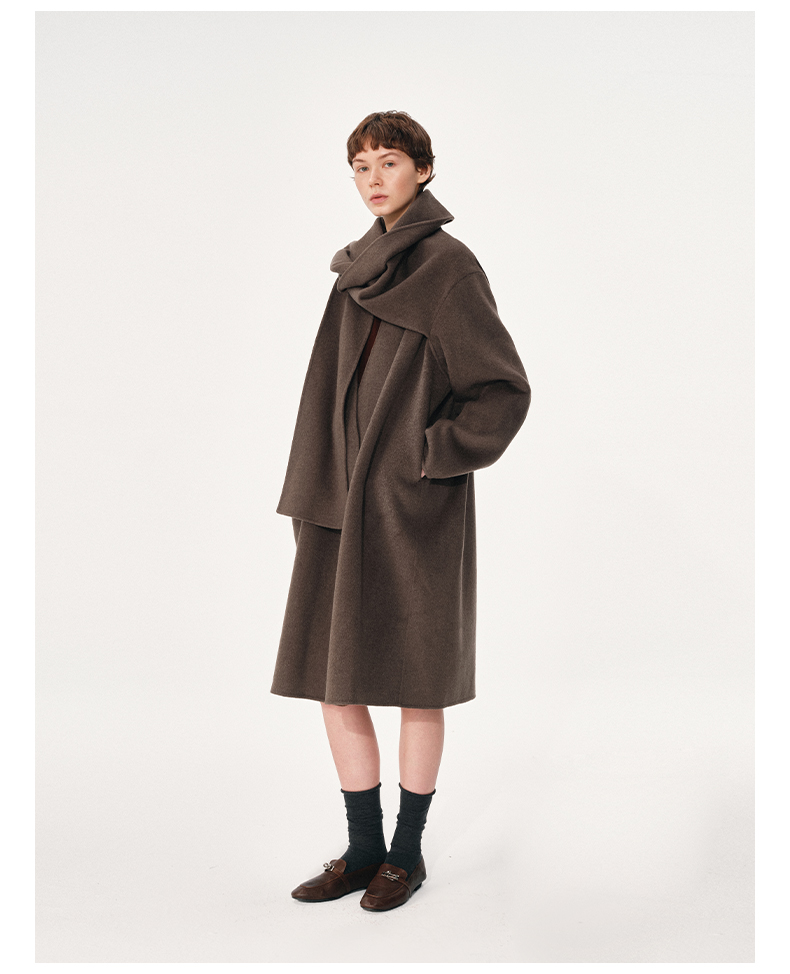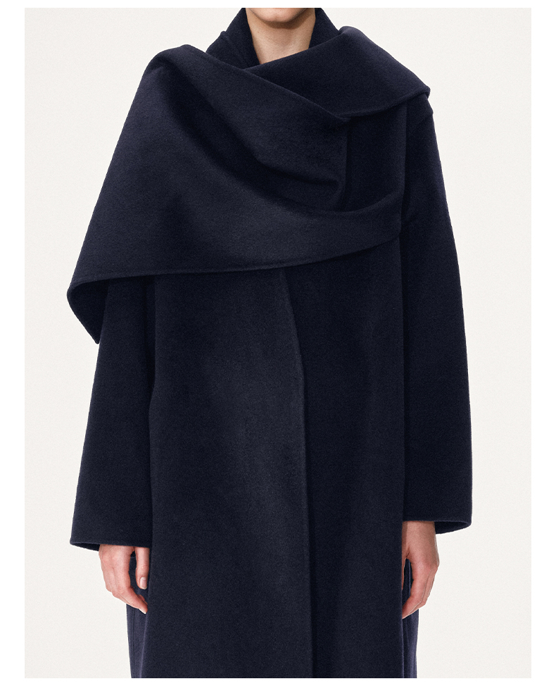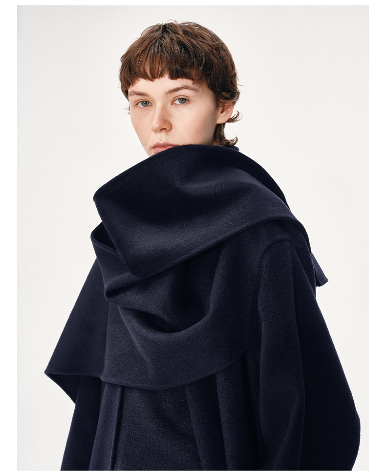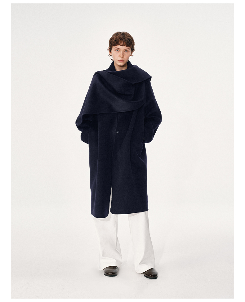 NUTH 羊毛混纺复古宽松围巾披肩长款毛呢大衣厚外套女