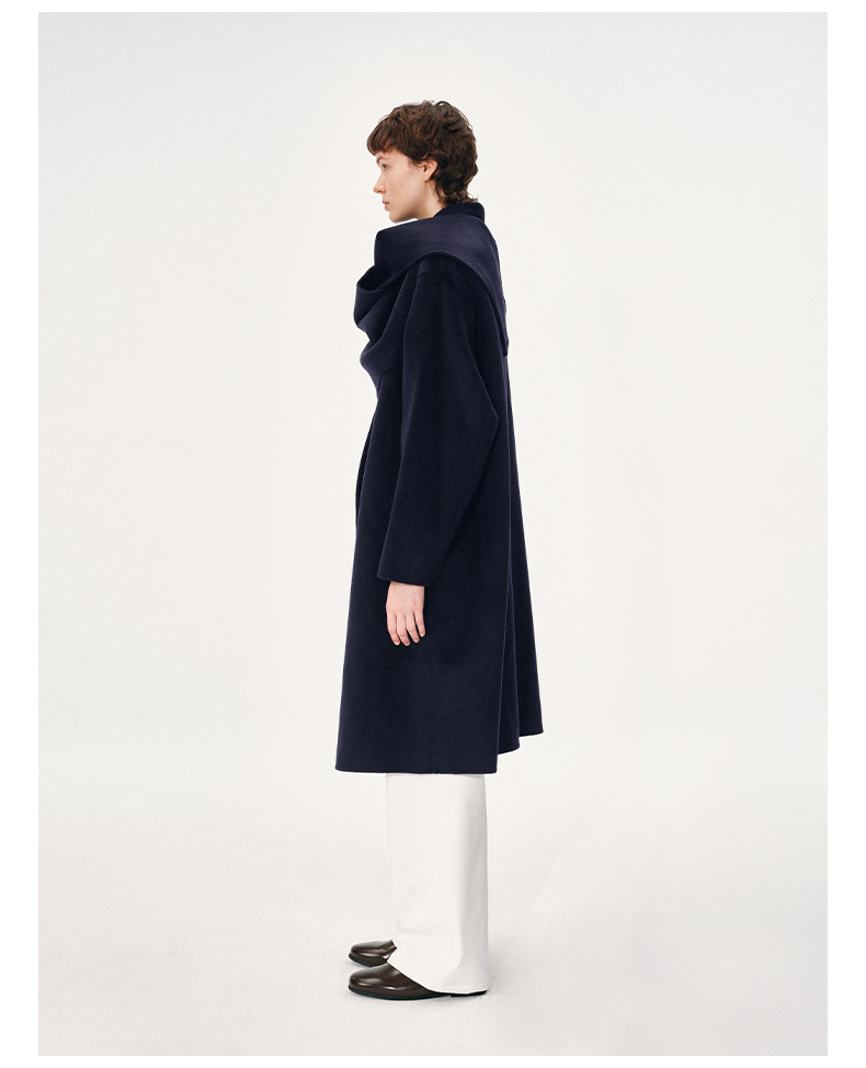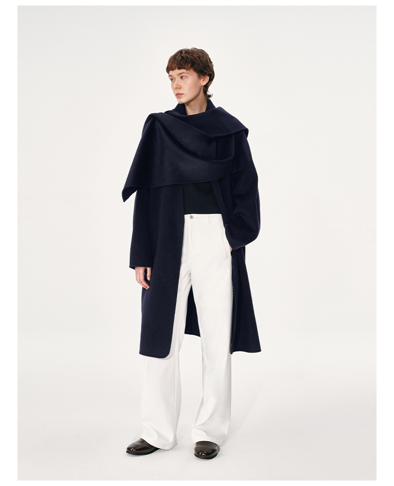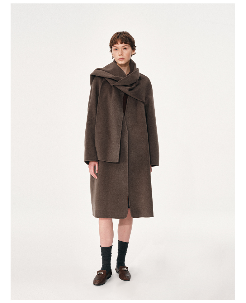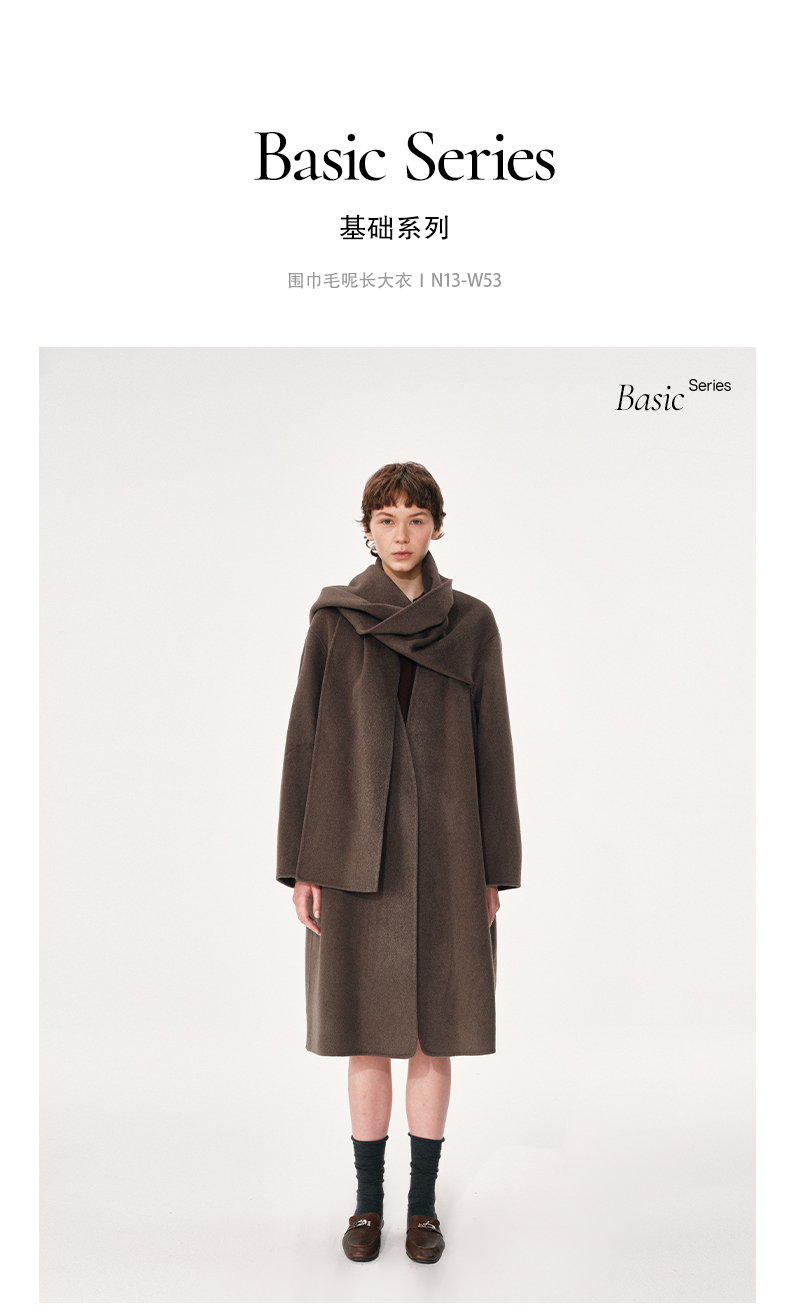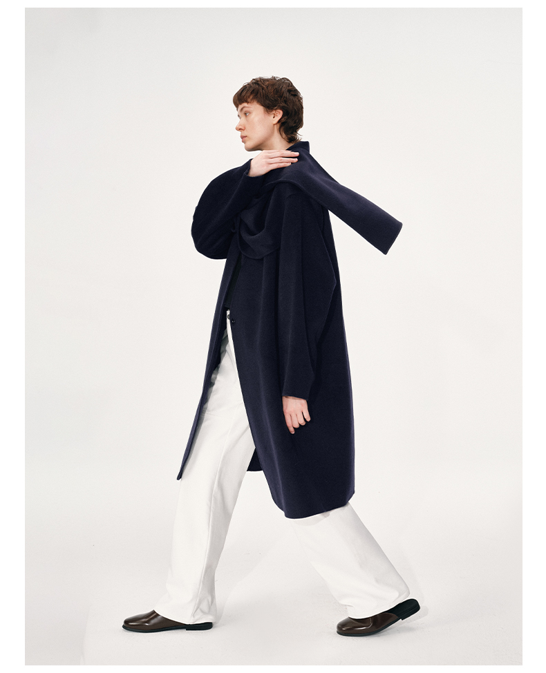 NUTH 羊毛混纺复古宽松围巾披肩长款毛呢大衣厚外套女