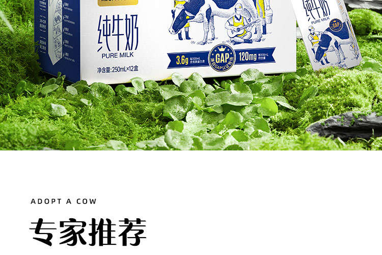 认养一头牛3.6g蛋白纯奶250ml利乐砖12盒 一提装