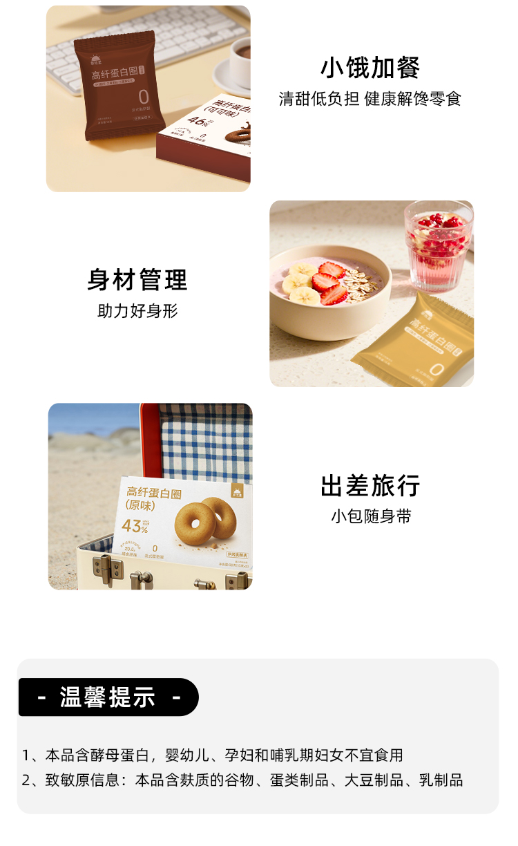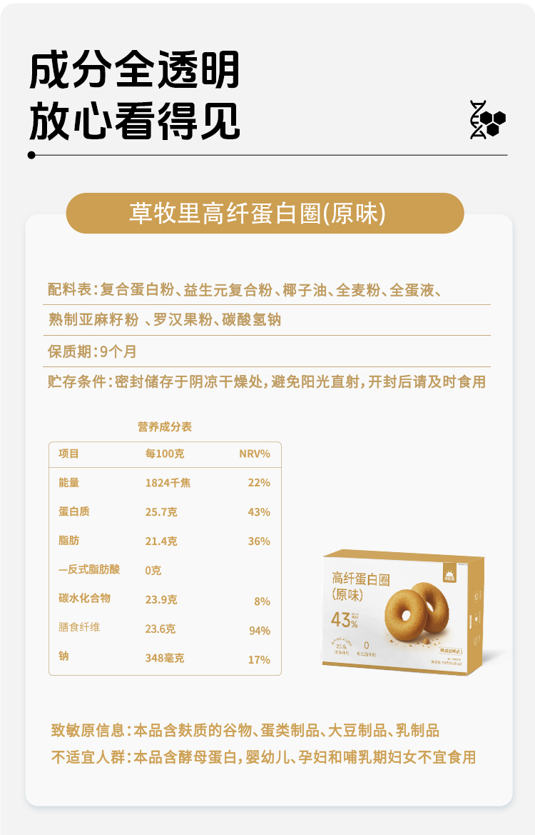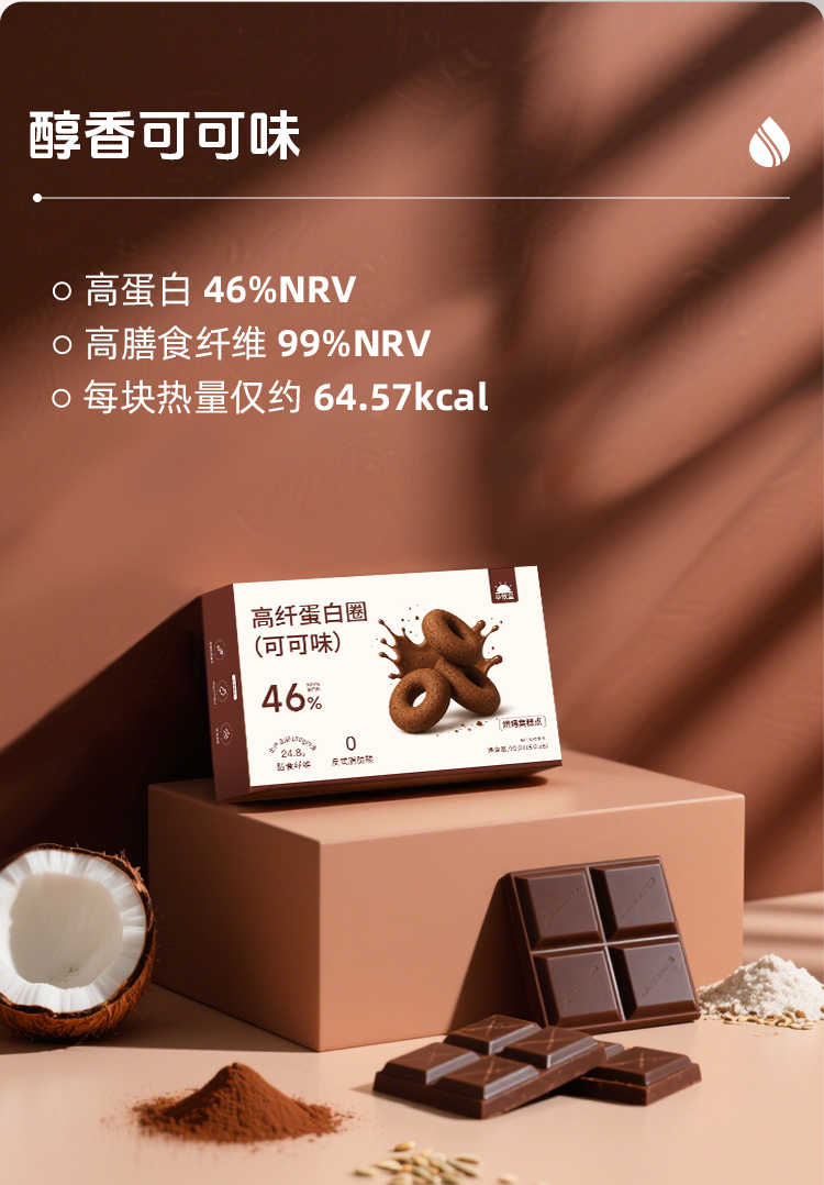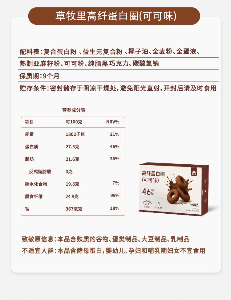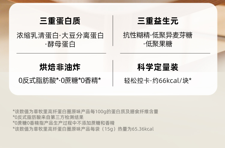 【健康零食】草牧里 高纤蛋白圈(原味/可可味) 15g*6个/盒 三重蛋白质益生元