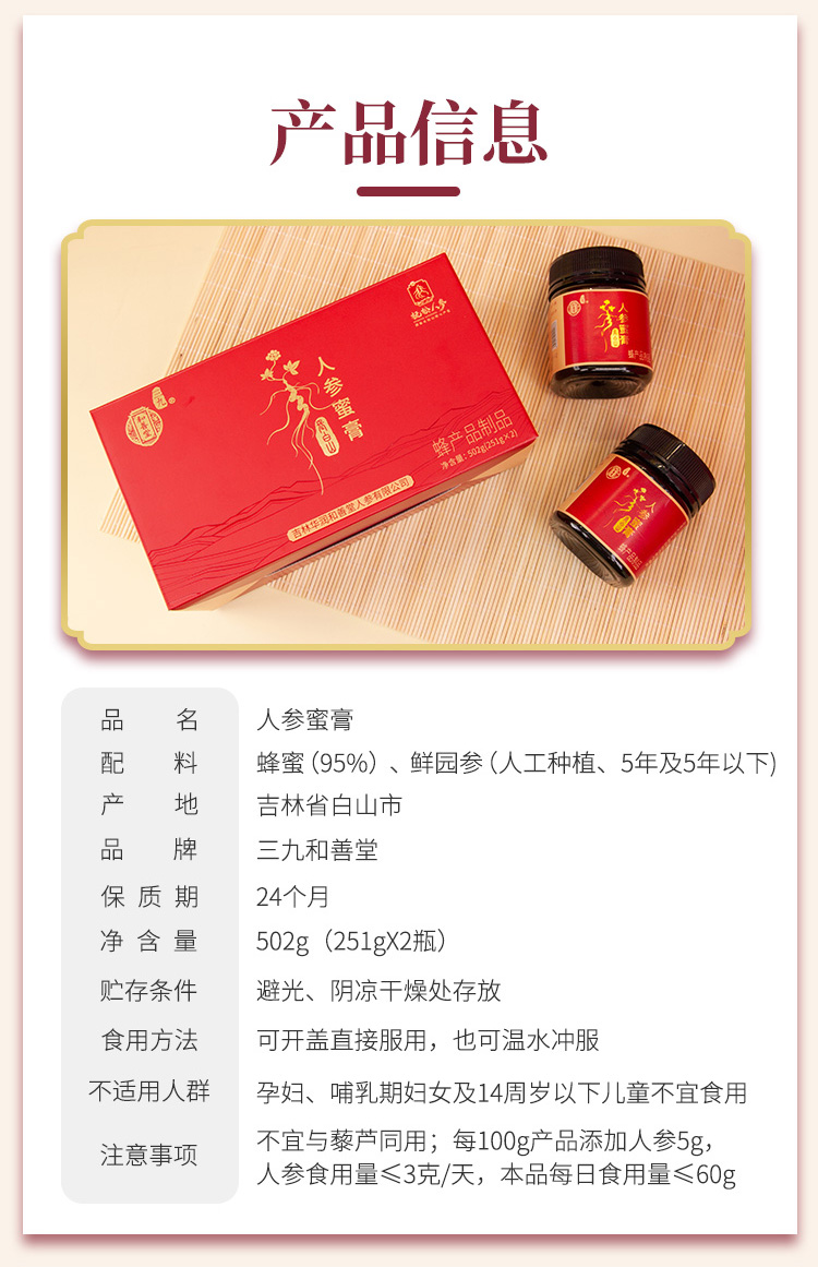 【P】华润堂 人参蜜膏 502克(251克x2瓶)