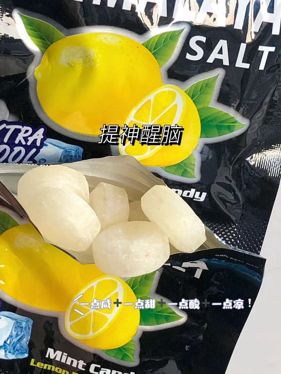 酸酸甜甜的柠檬糖~带着一丝淡淡的咸味还有清爽的薄荷凉感,不会辣嘴的薄荷味 但能让喉咙感受明显的凉感,真的是味道最丰富的糖果了,一吃就停不下来。