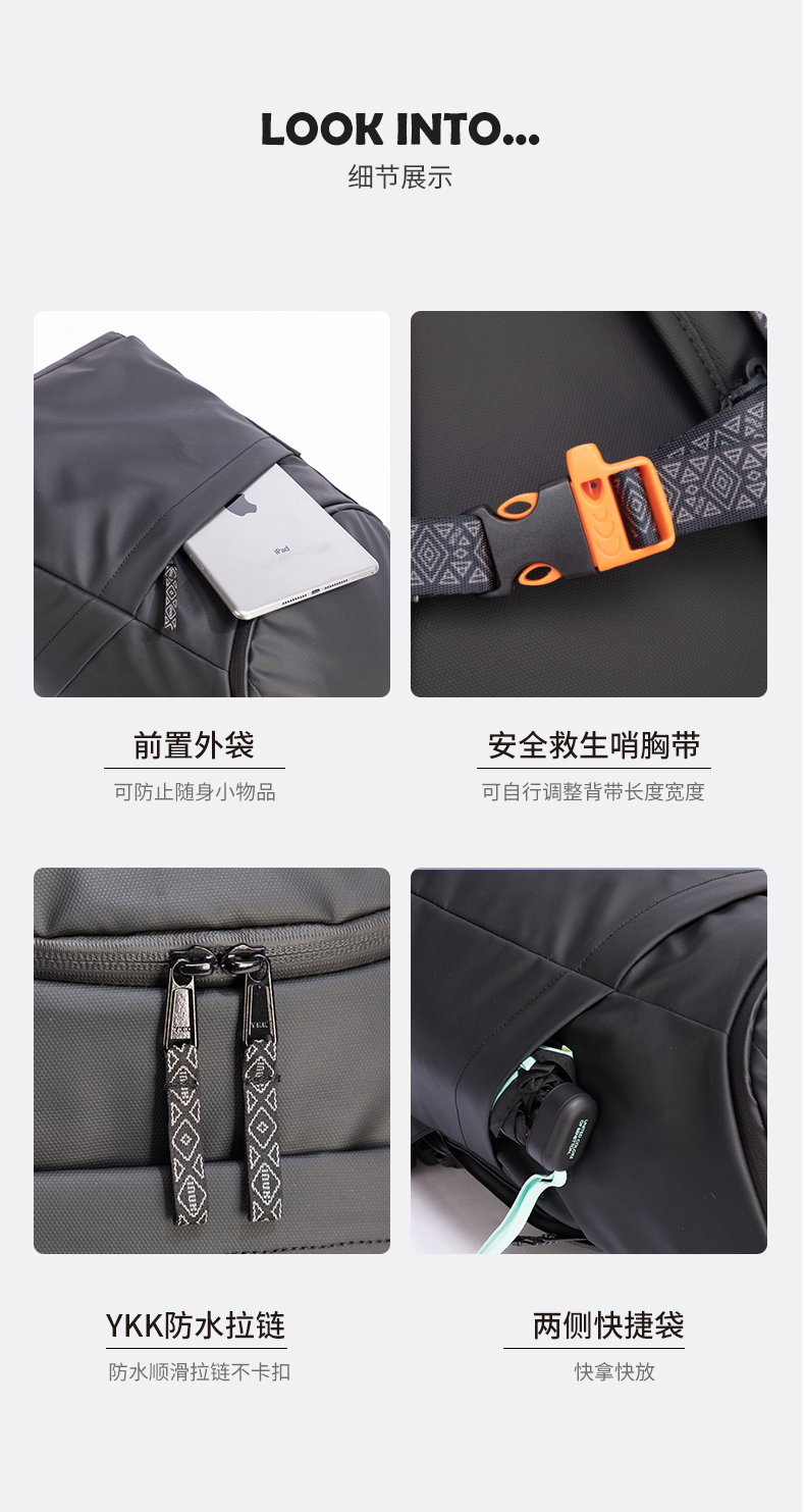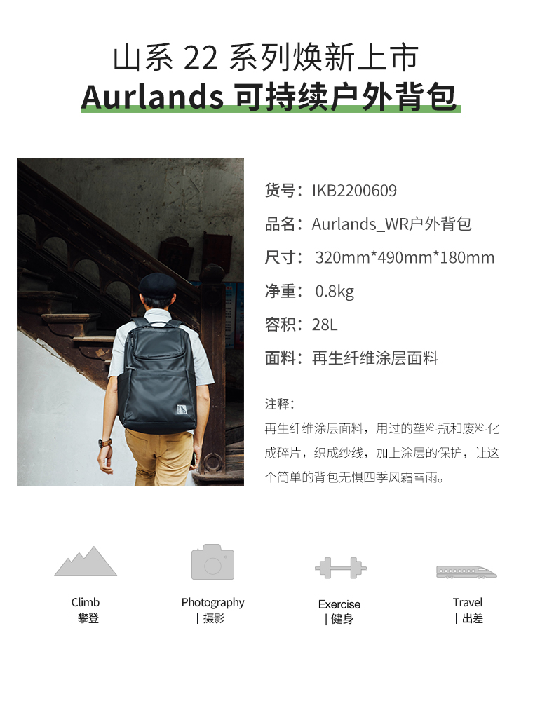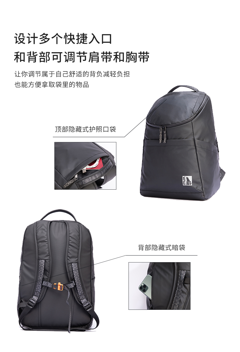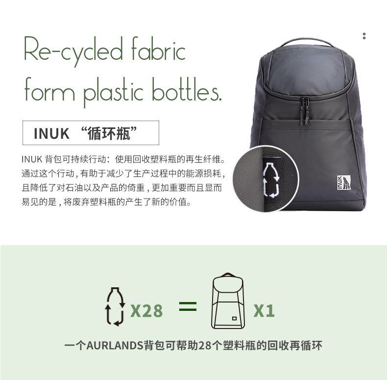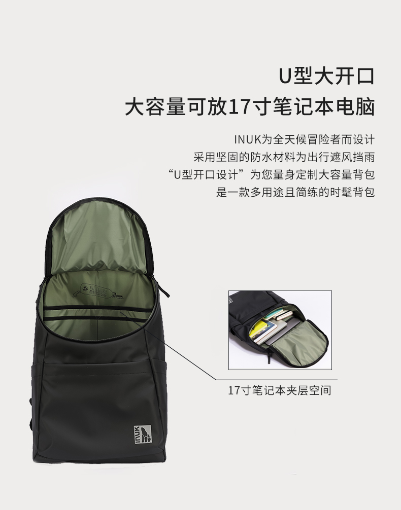 INUK 新款环保防水双肩包 经典大容量书包电脑包户外旅行包男