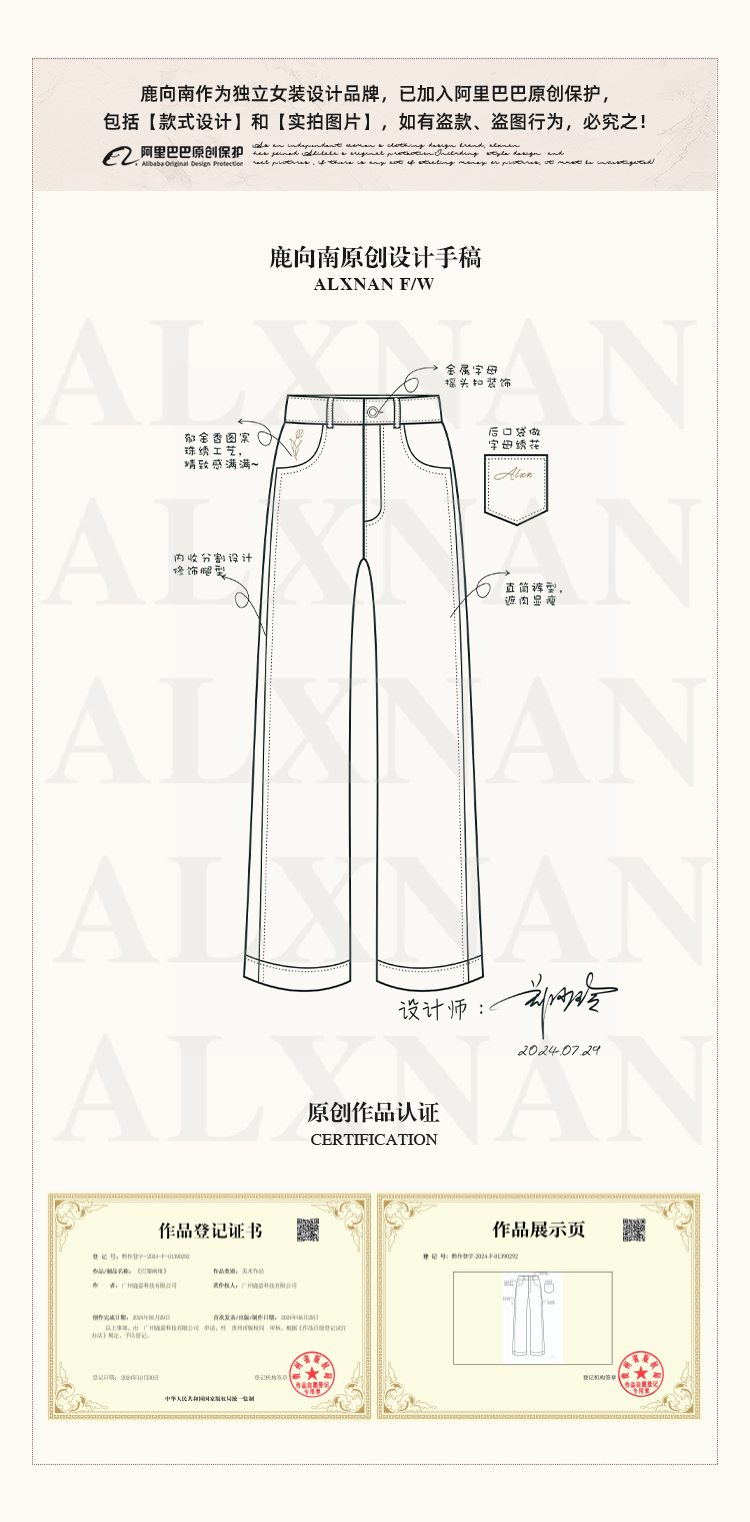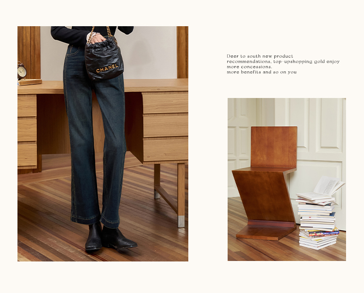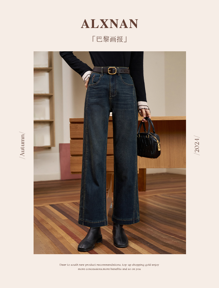鹿向南「巴黎画报」复古蓝色牛仔裤女2025秋季新款高腰直筒长裤子