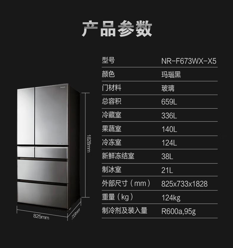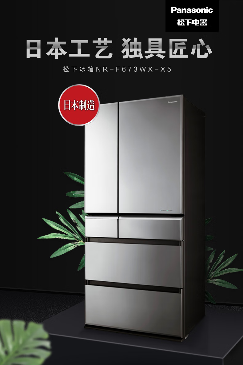 【线下同款】松下(Panasonic)659升日本原装进口冰箱自动独立制冰 纳诺怡除菌 NR-F673WX-X5
