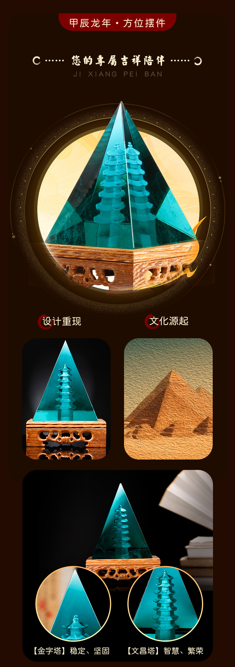 慈元阁2024年方位吉祥礼物摆件斗转乾坤金字塔摆设家居办公室饰品