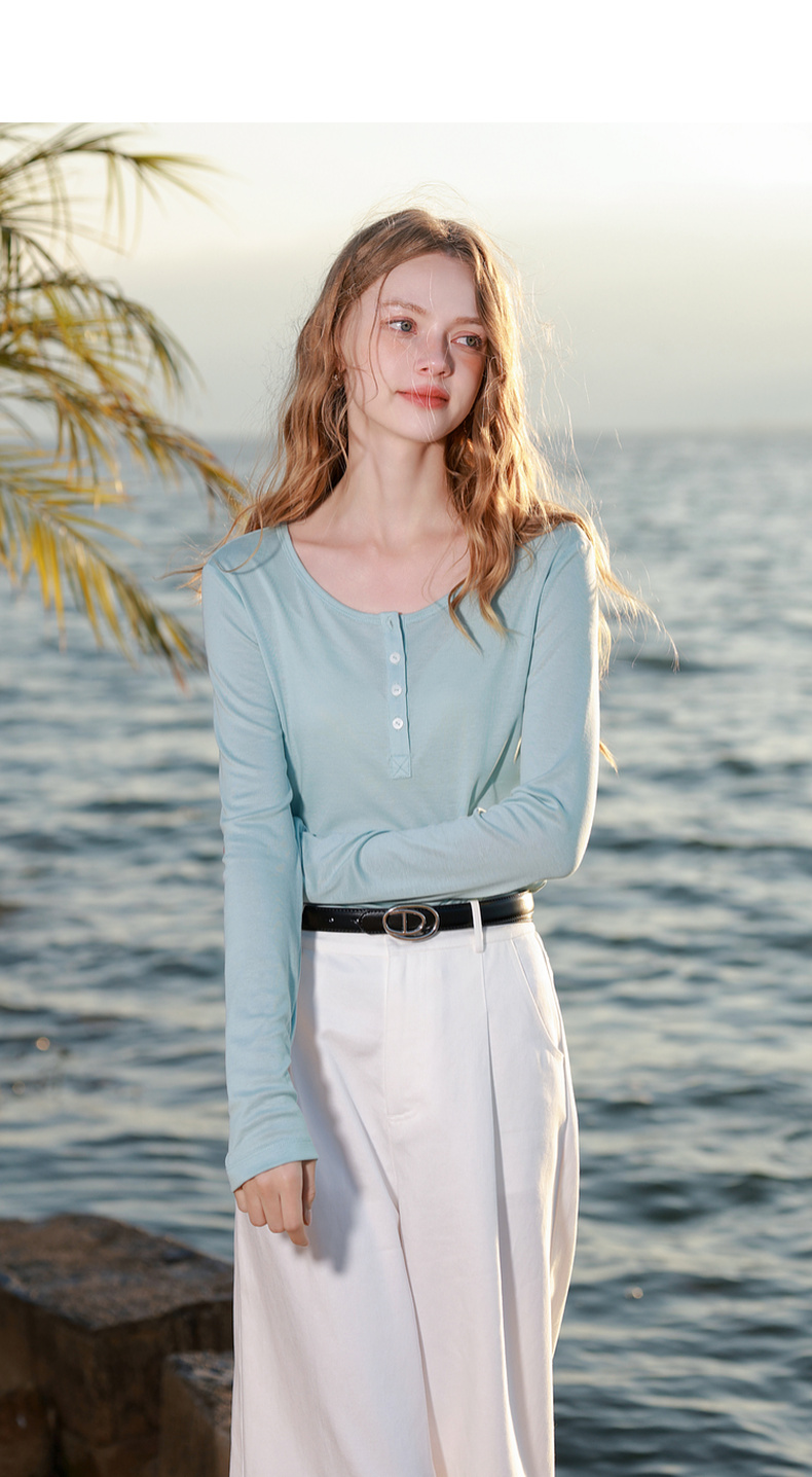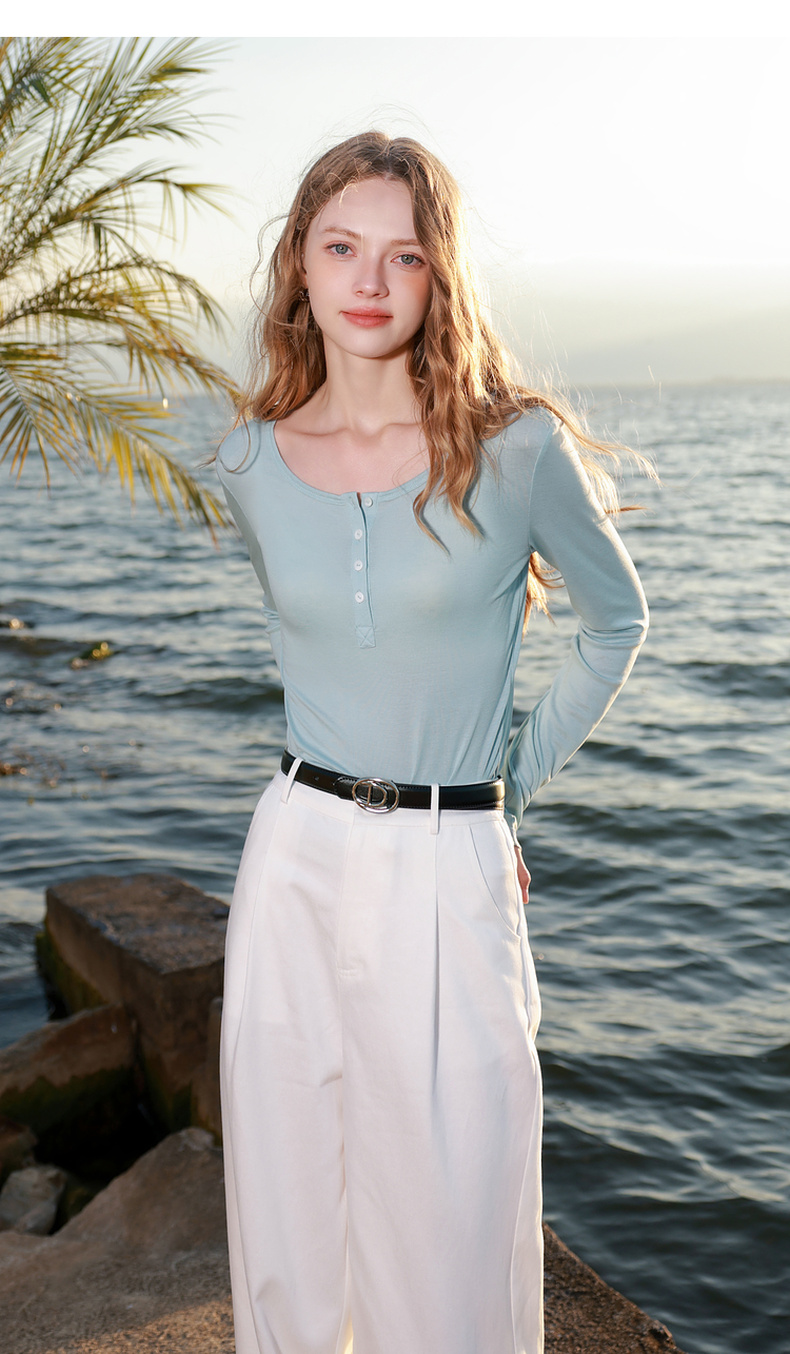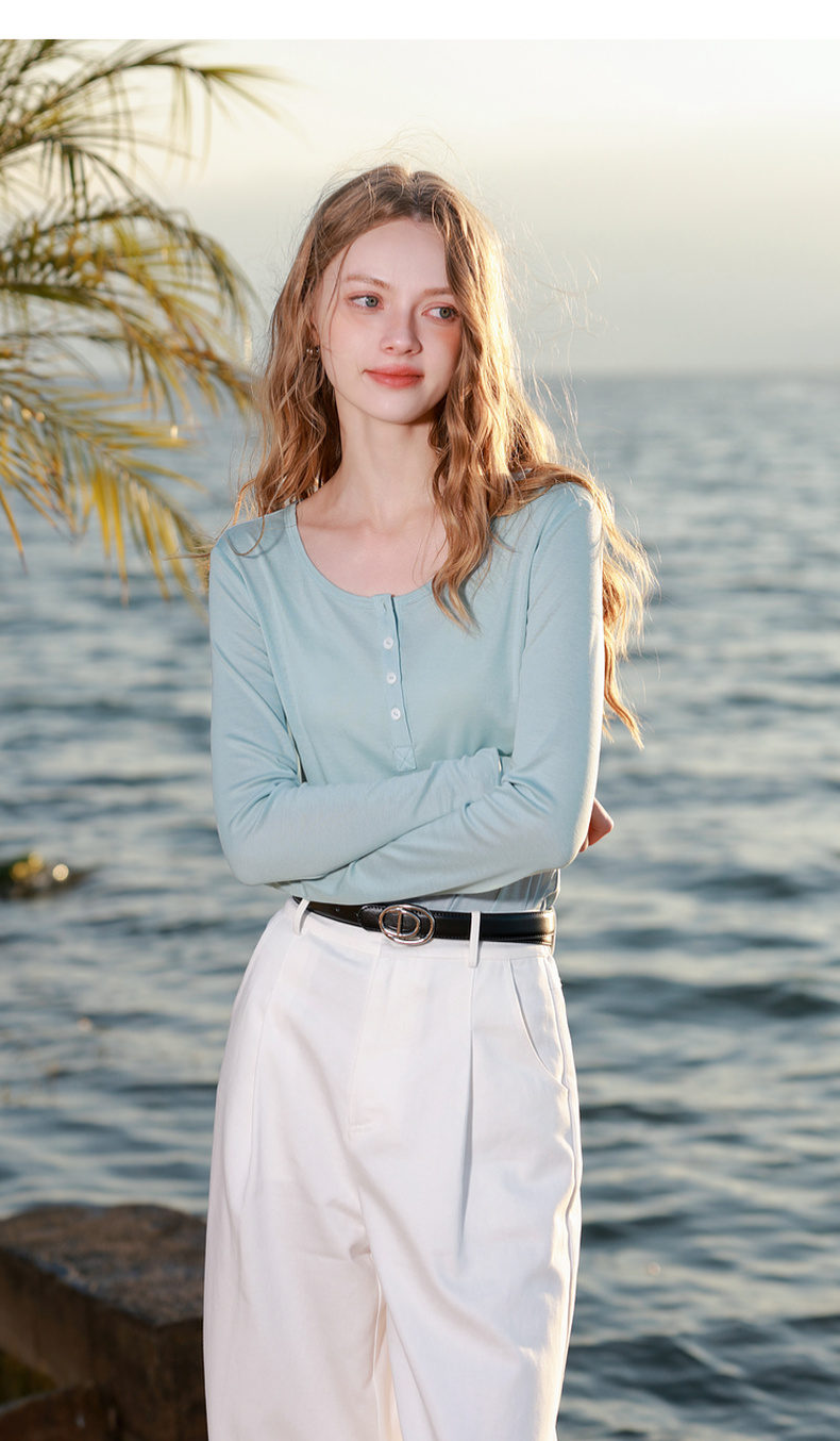 【莱赛尔】三彩2026春季新款圆领长袖T恤上衣套头衫修身简约休闲M