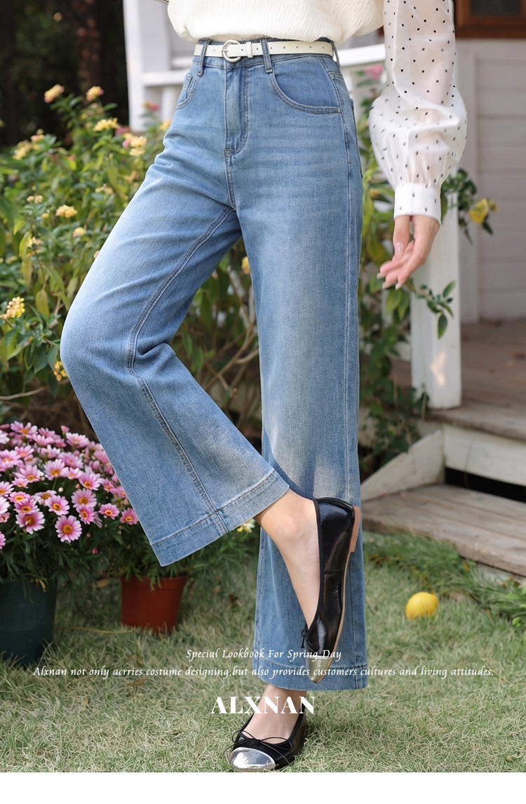 鹿向南「唯蓝织夏」百搭蓝色牛仔裤女2026夏季最新款显瘦遮肉长裤