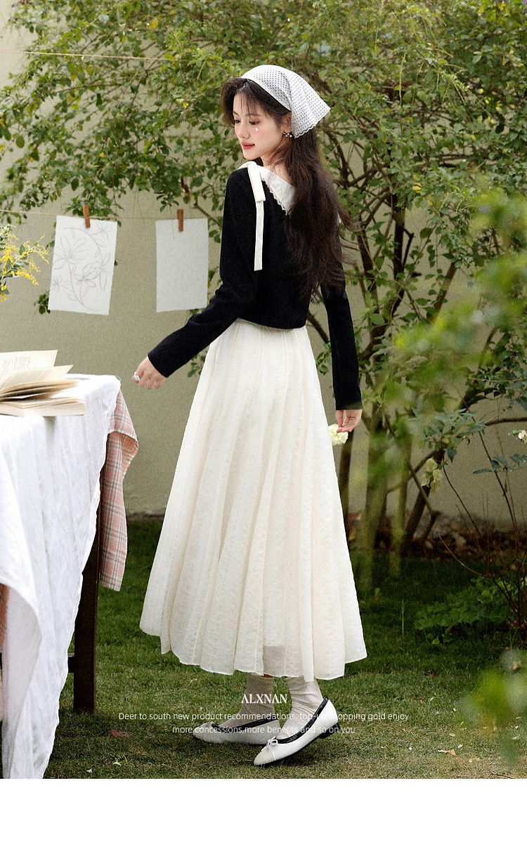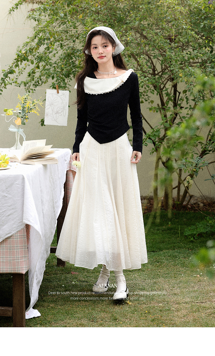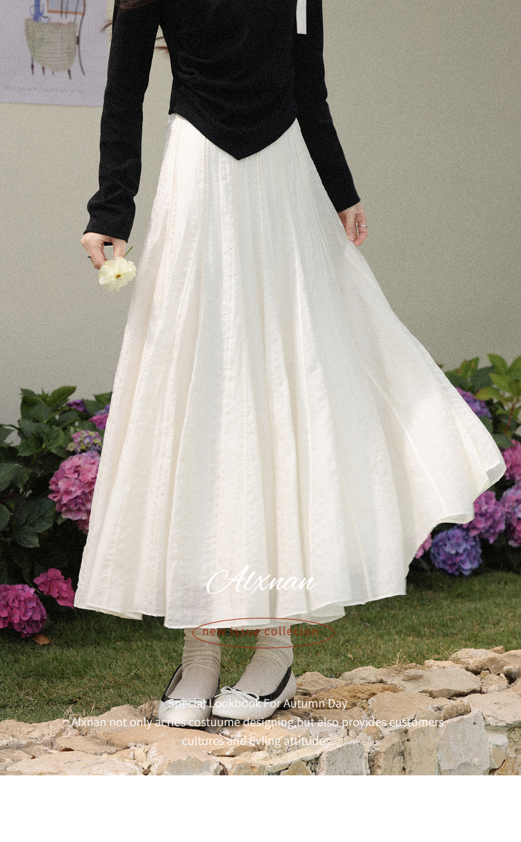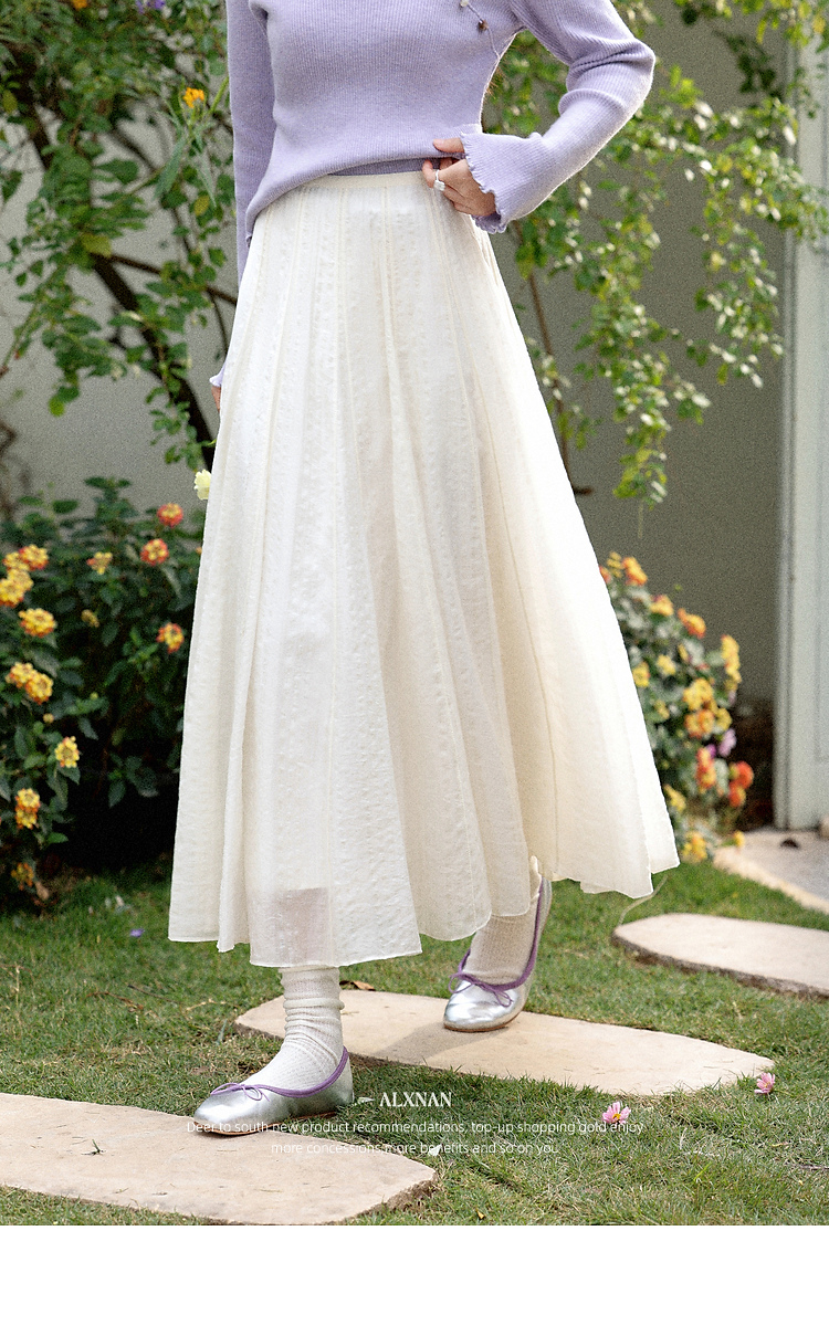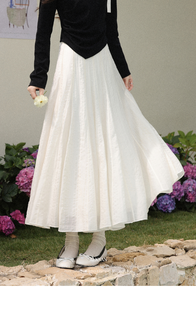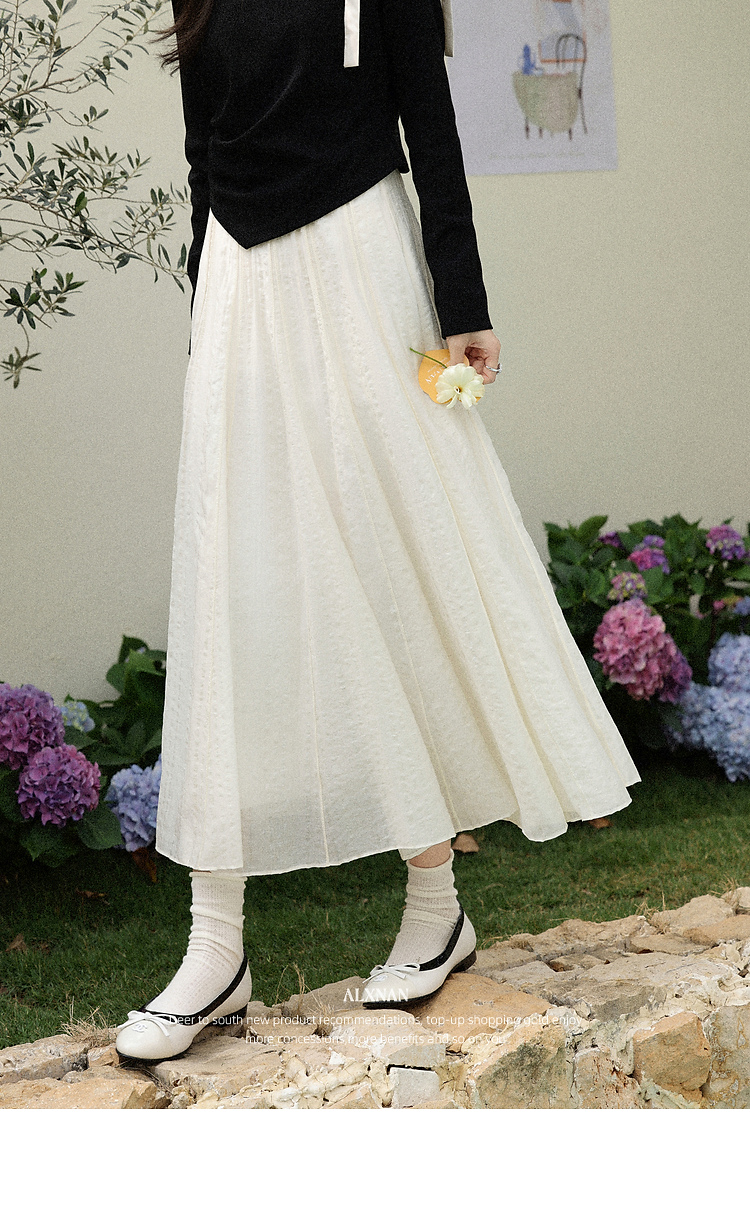 鹿向南「白梅弄影」设计感白色半身裙女春季新款高腰显瘦长款裙子