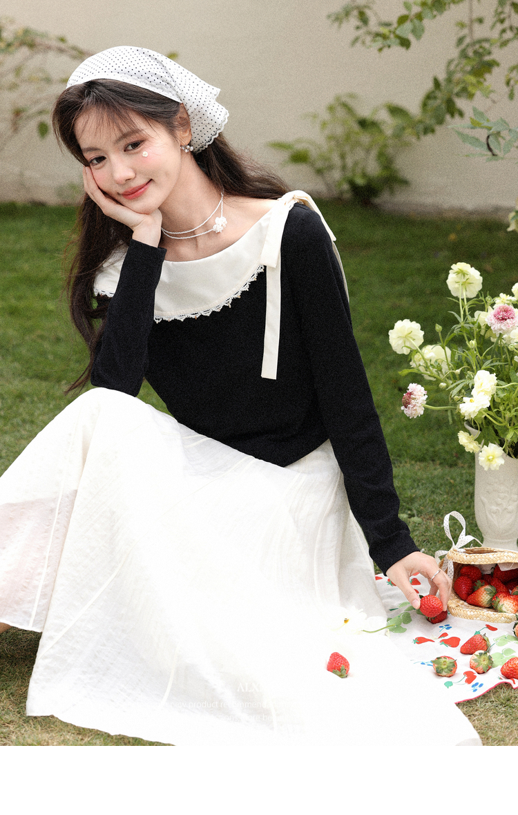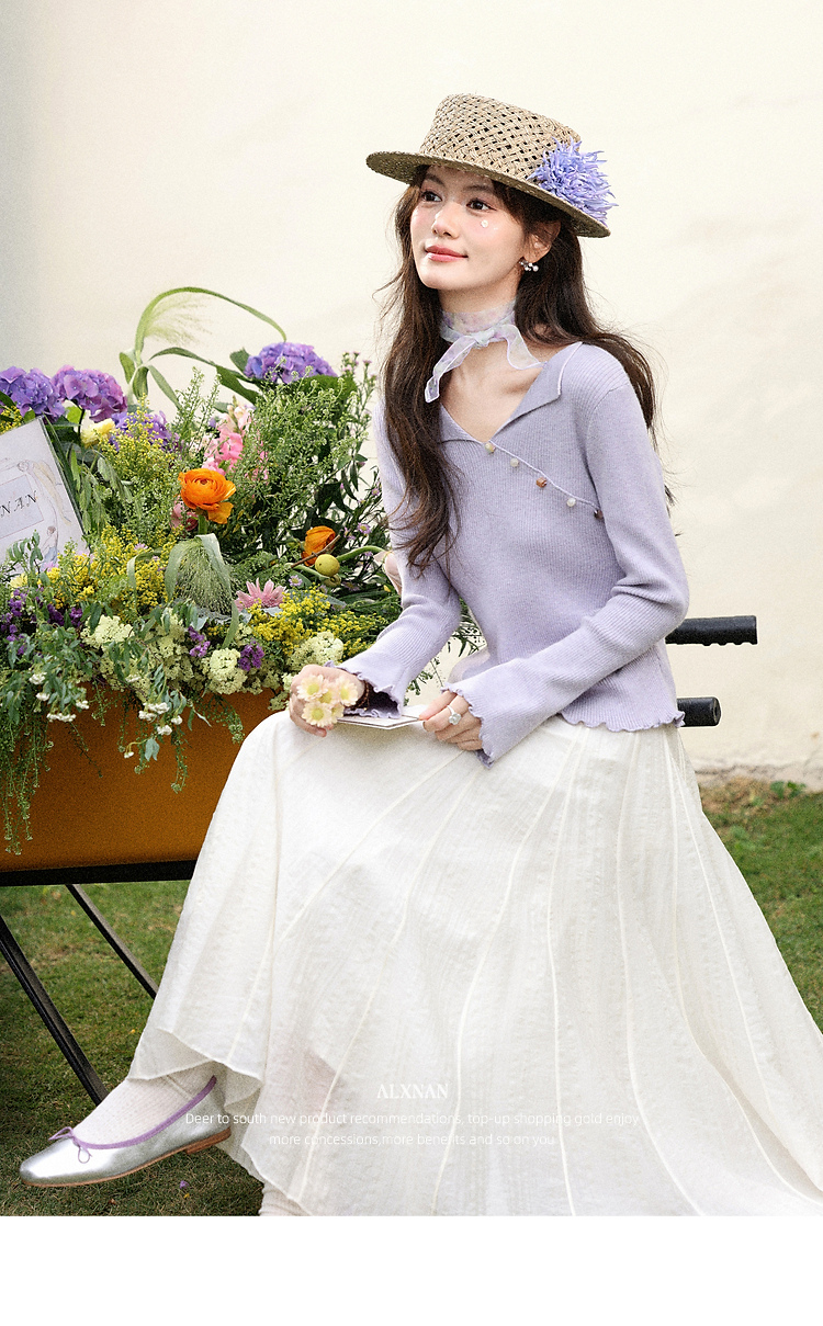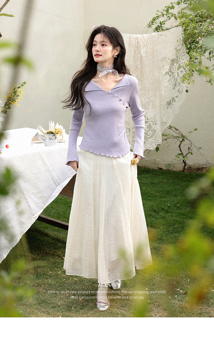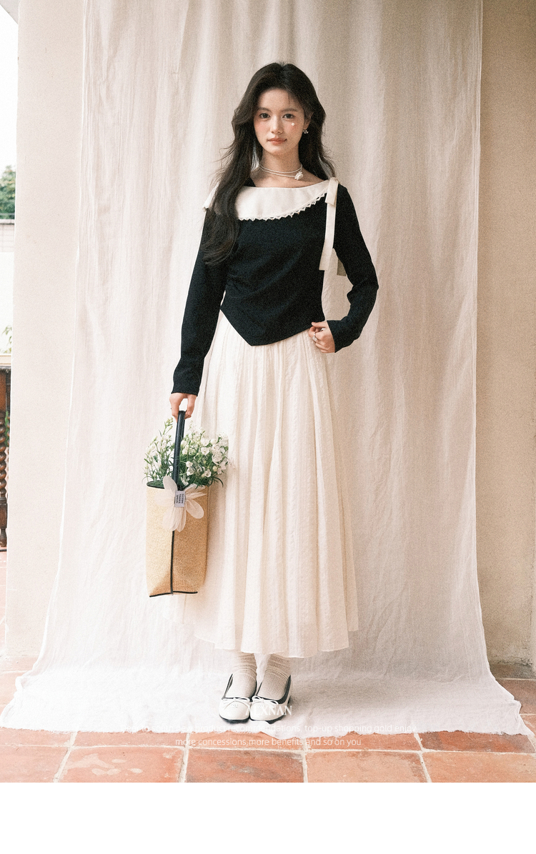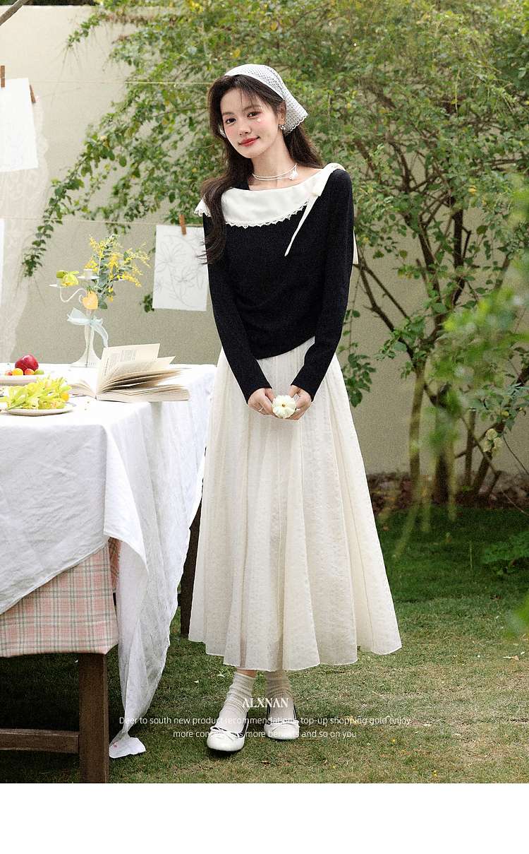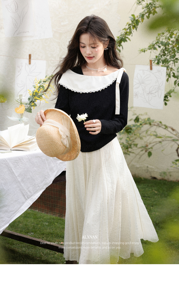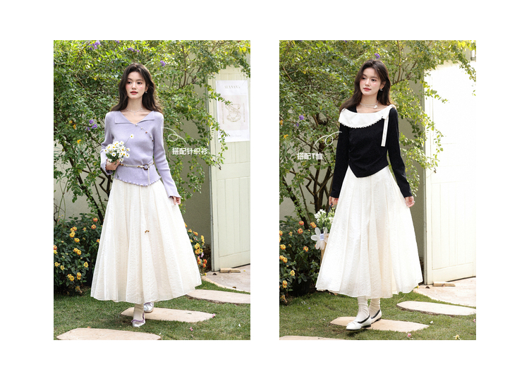 鹿向南「白梅弄影」设计感白色半身裙女春季新款高腰显瘦长款裙子
