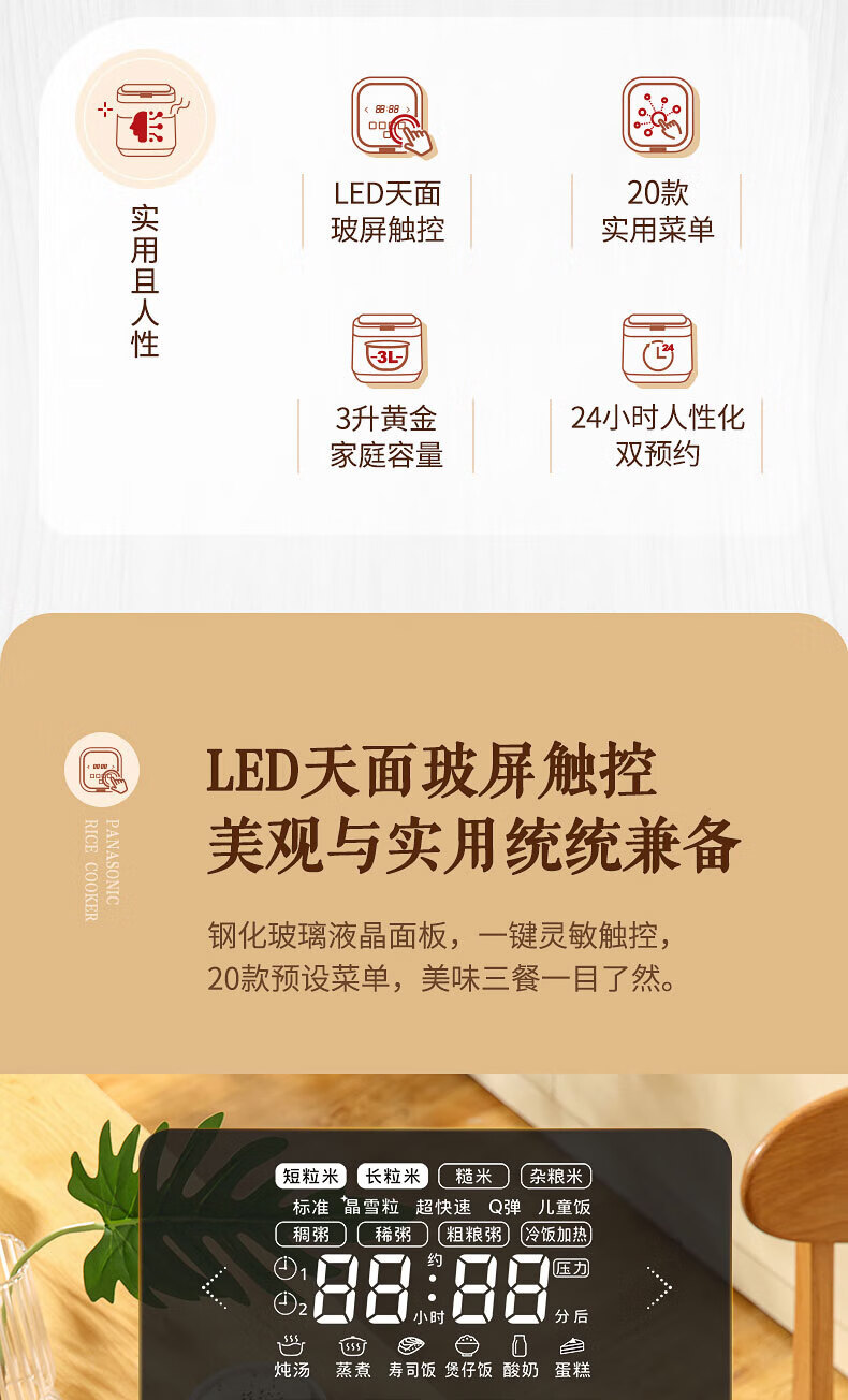 松下(Panasonic)饭之舞系列3L电饭煲 五段变频IH大火力家用电饭锅2-6人 备长炭铜釜 可预约 SR-HZ102