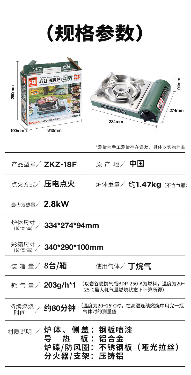 岩谷(Iwatani) 户外卡式炉便携防风烧烤炉具2.8kW大火力野炊瓦斯炉家用燃气炉子 ZKZ-18F防风炉2.8kW大火力