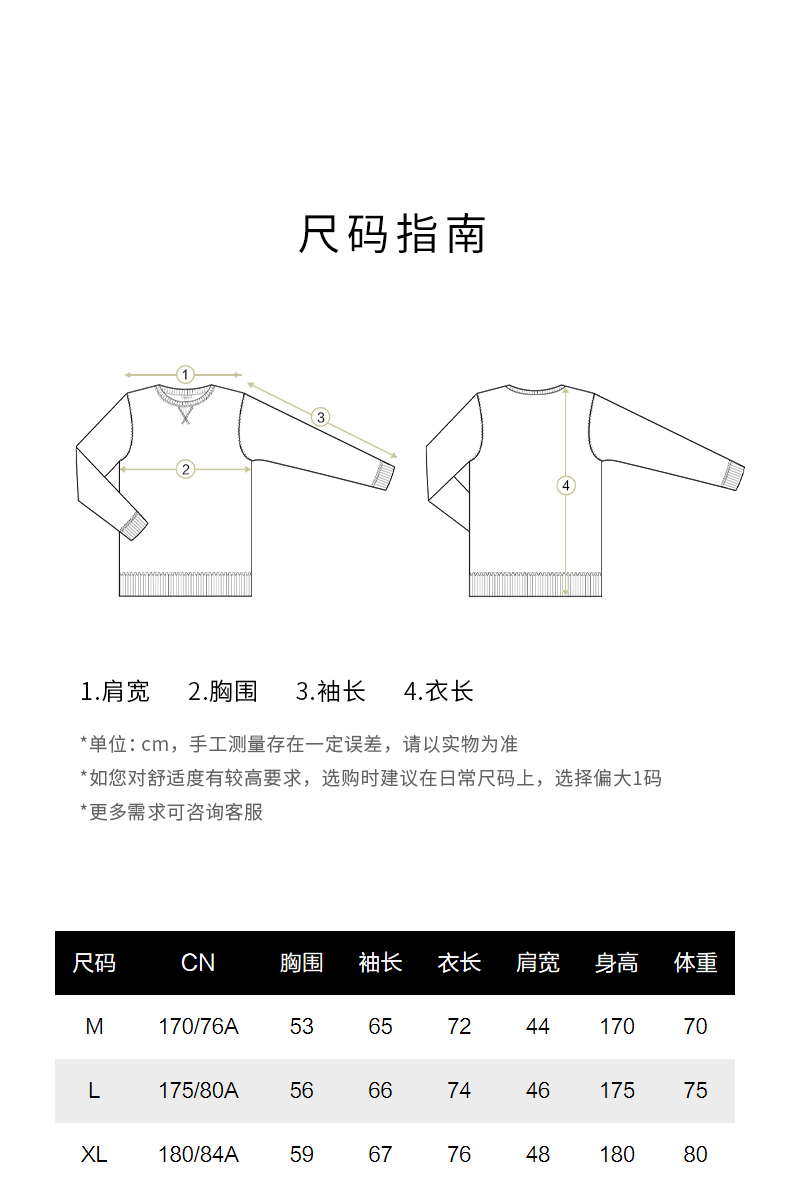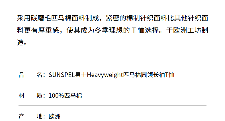 SUNSPEL男士经典款Heavyweight匹马棉圆领长袖经典T恤