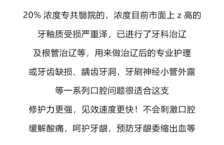 帮助修护牙柚质、牙敏感、牙箘斑、