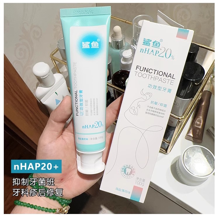 这款鲨鱼牙膏它能够在我们刷牙的时候,