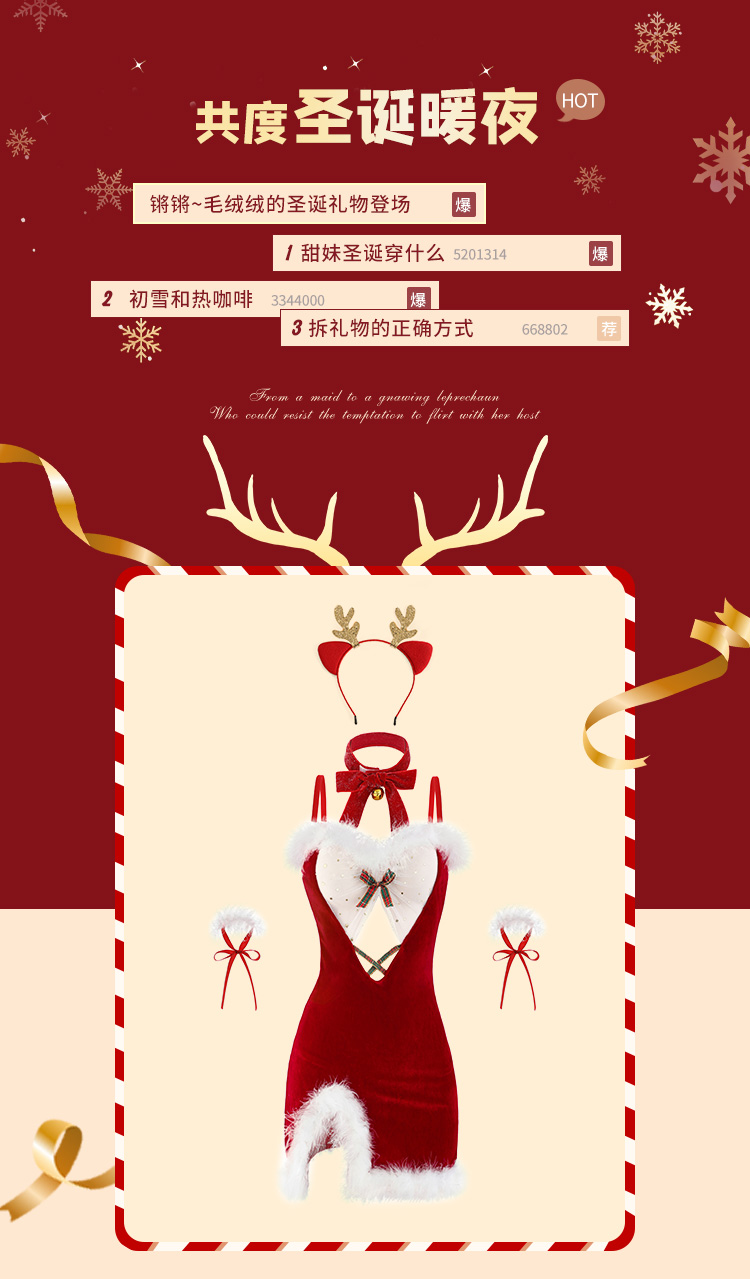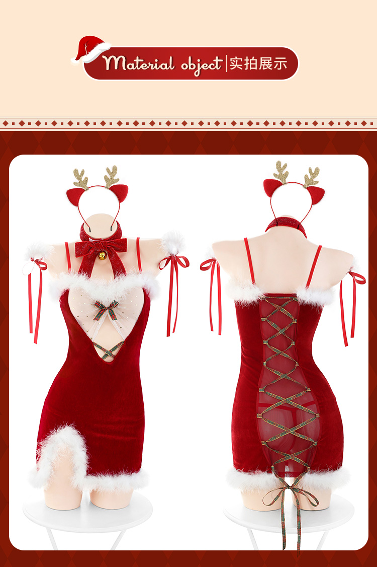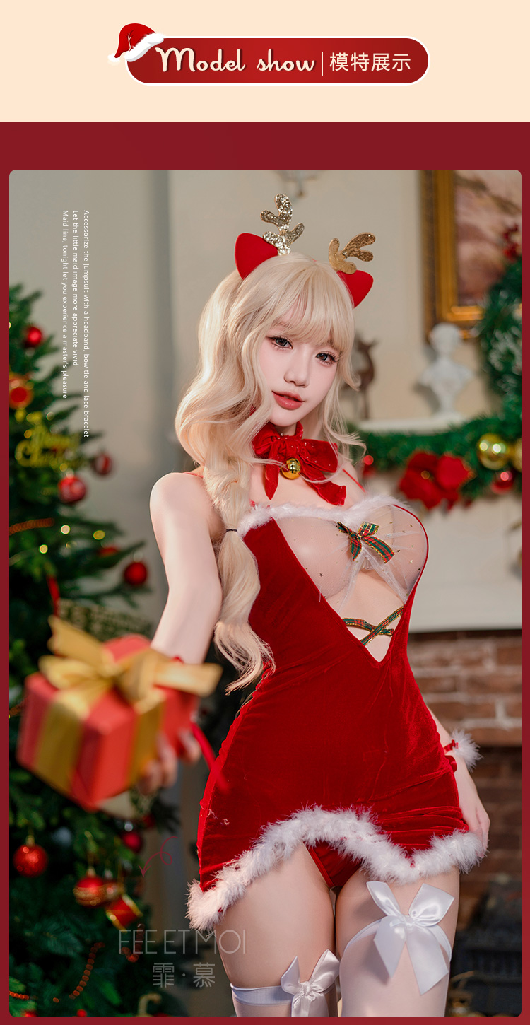 【情趣内衣】霏慕 毛毛透纱系带圣诞套装6709