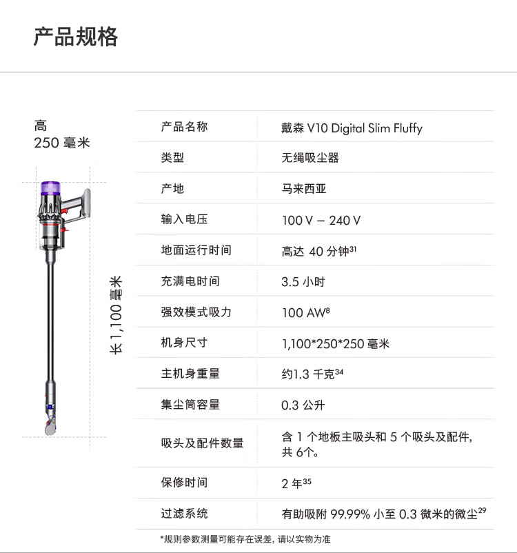 戴森(Dyson)V10 Digital Slim Fluffy无绳吸尘器(新一代铁镍色)手持无线 除螨 宠物 家庭适用